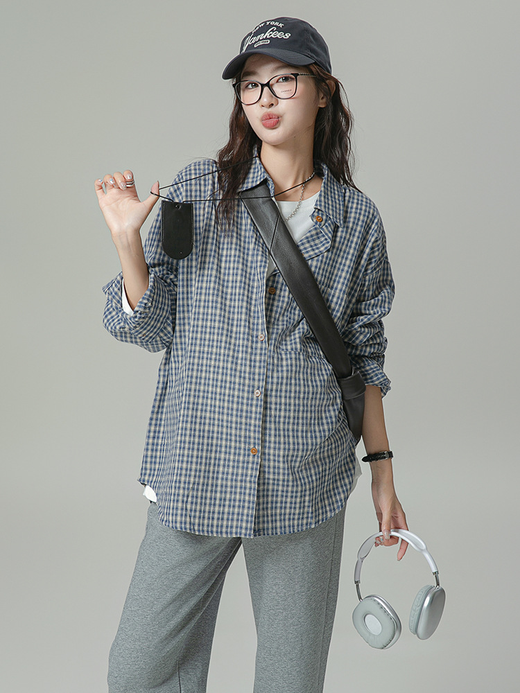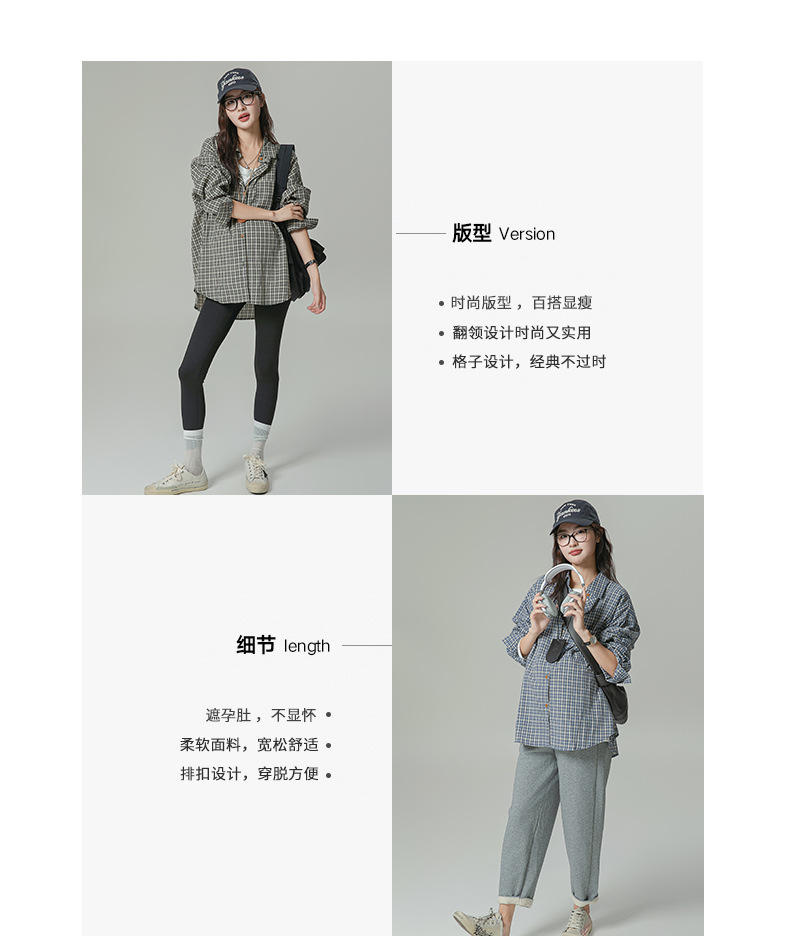 Осенняя повседневная одежда для беременных Корейская версия классическая клетчатая рубашка по беременности и родам рубашка с длинными рукавами плюс размер отворот рубашки для беременных