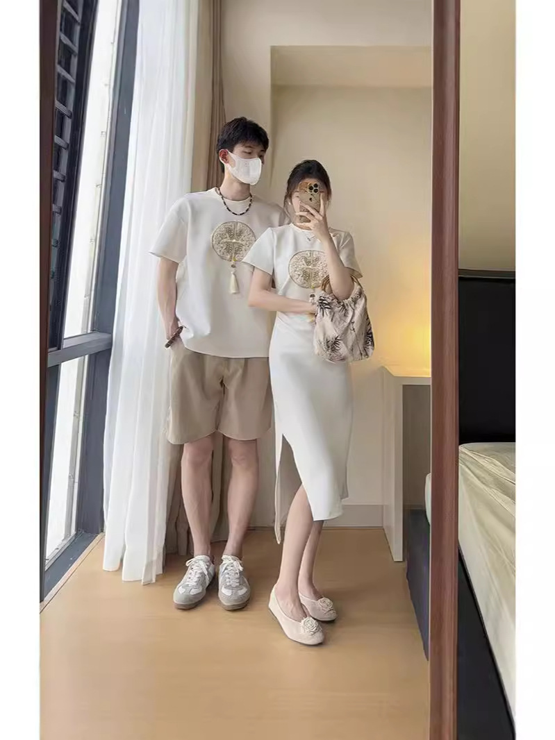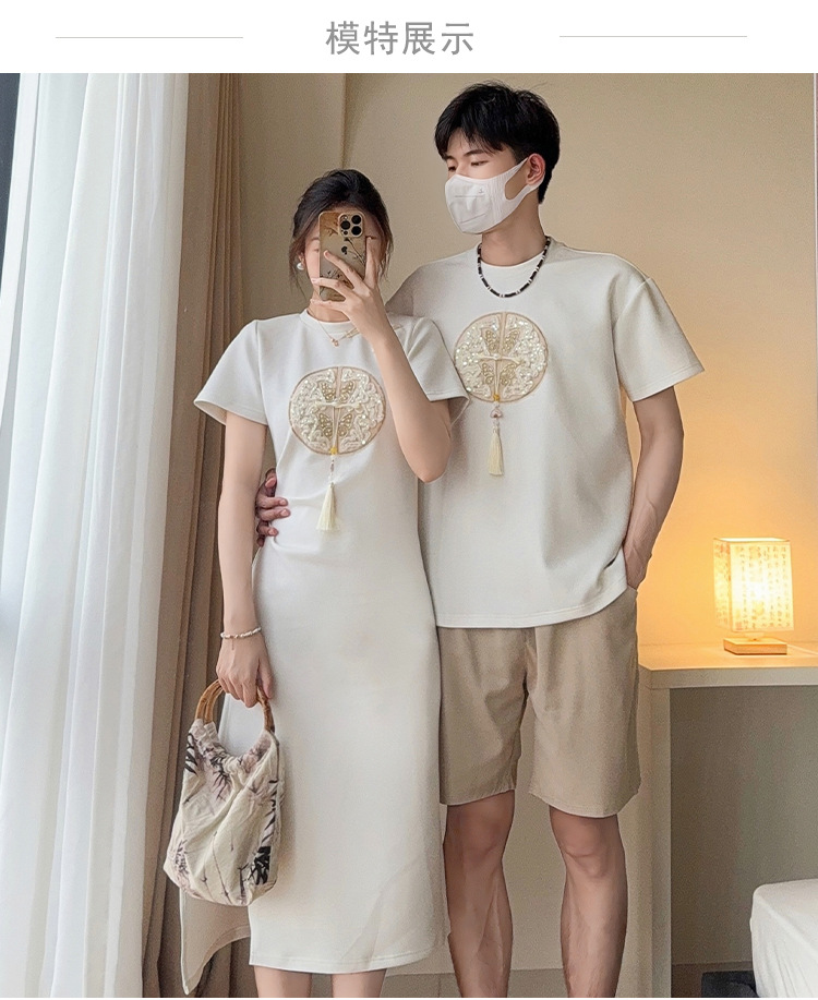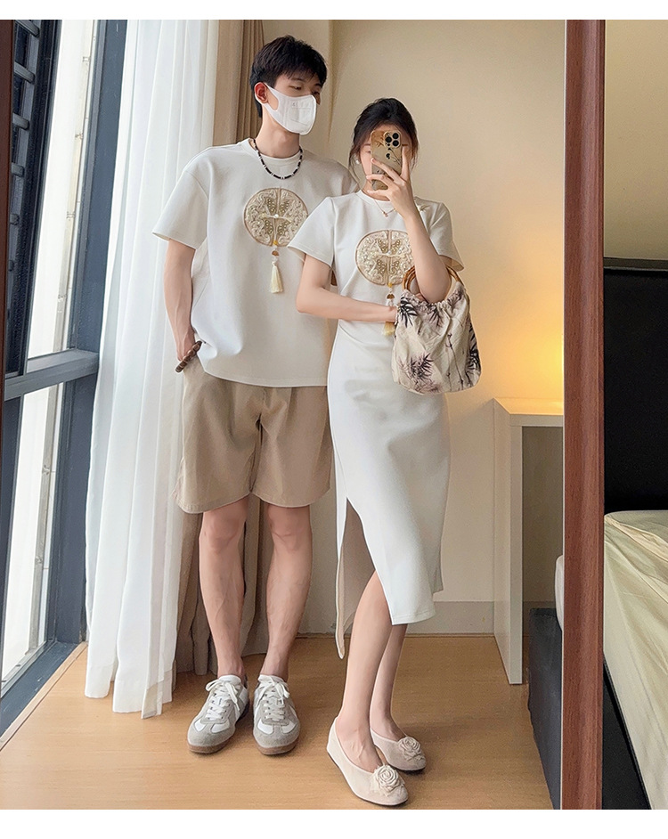 Китайская пара платье национальный стиль вышитый бисер с открытой футболкой платье женский летний дизайн