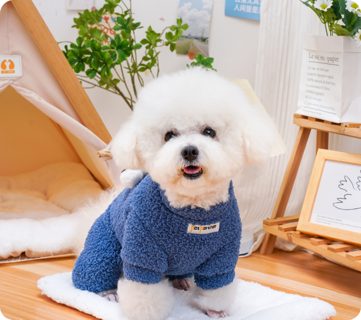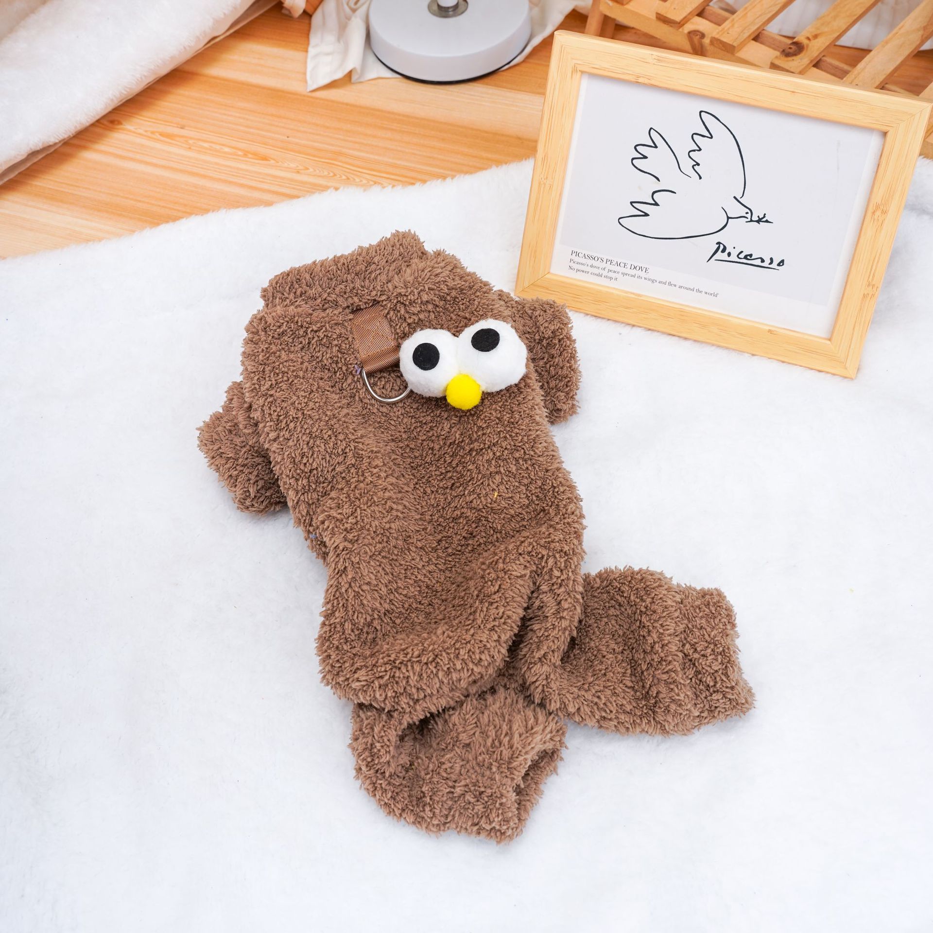 Симпатичная теплая бархатная четвероножная куртка с большими глазами.