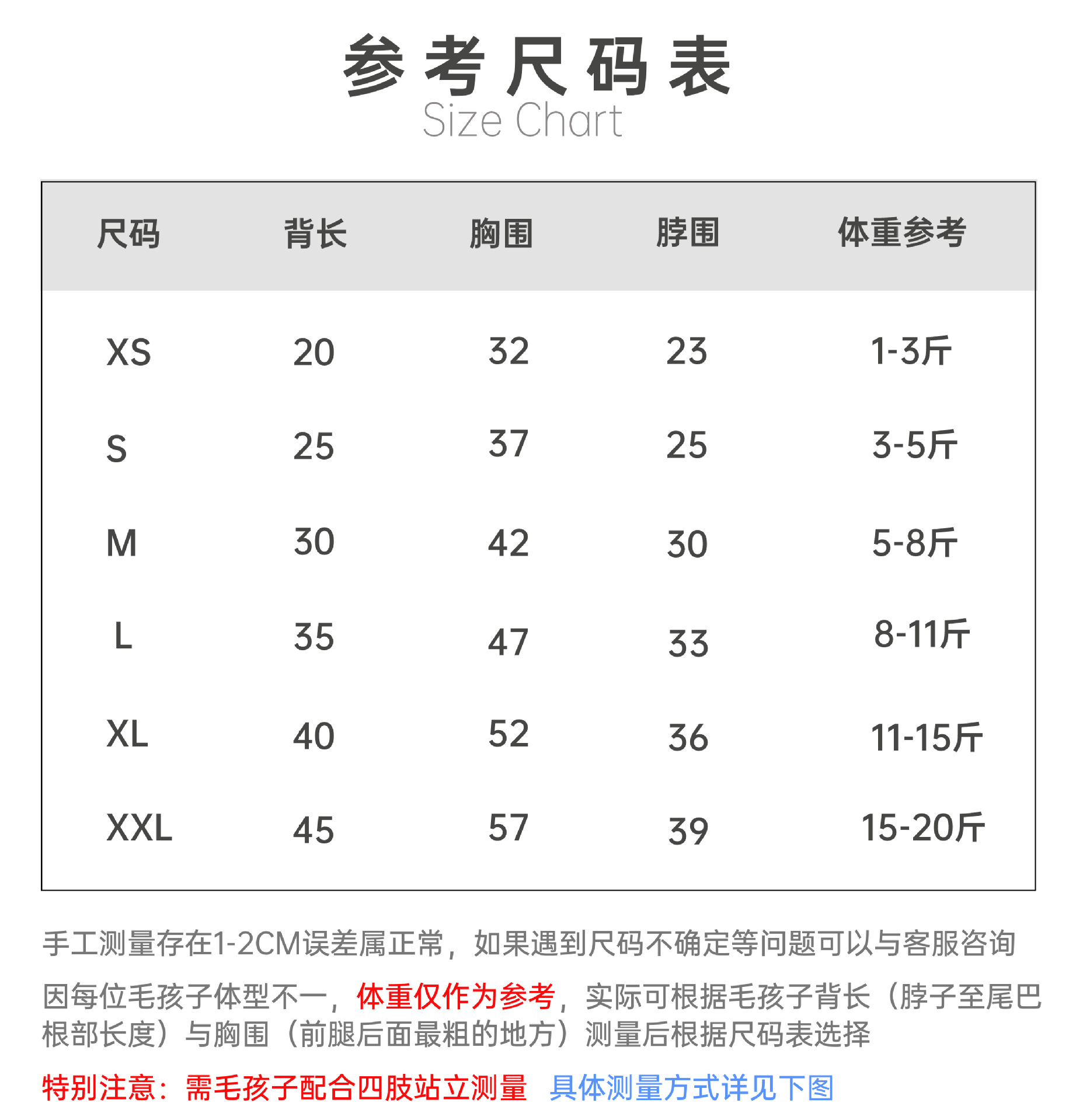 XS; S; M; L; XL; XXL