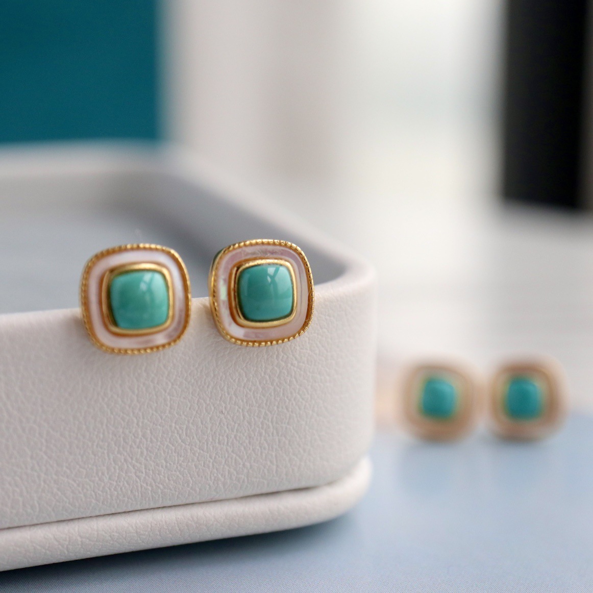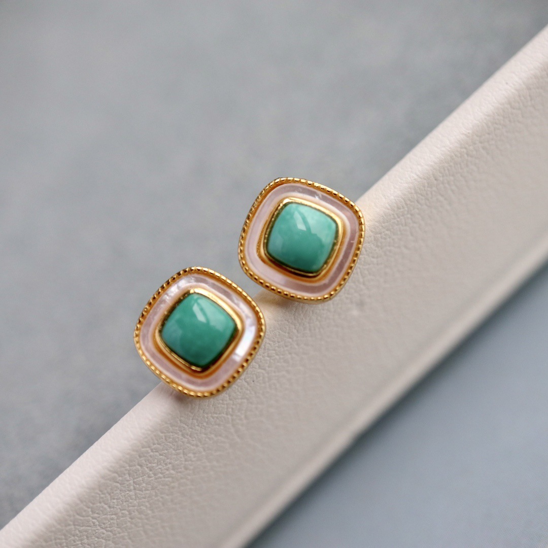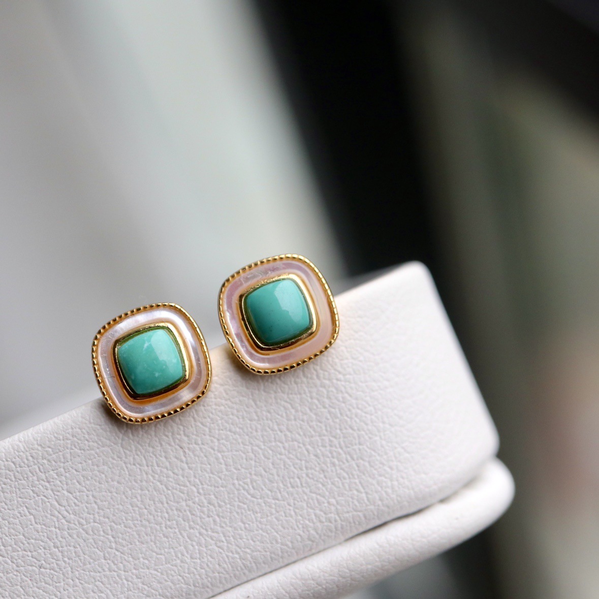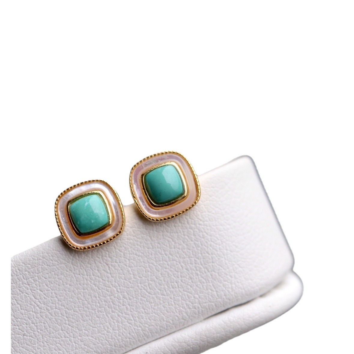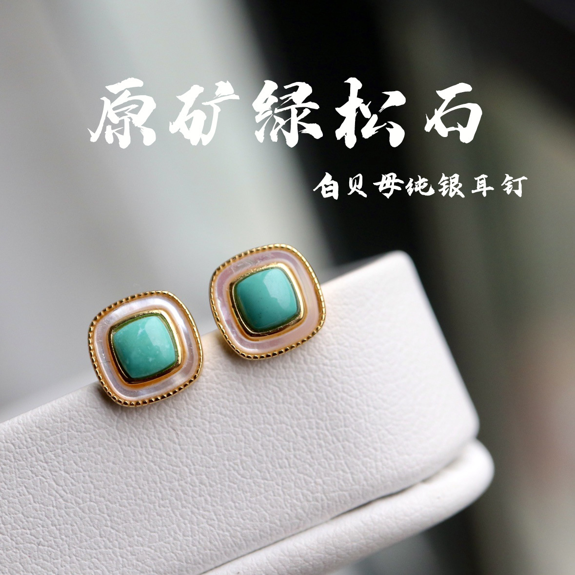 Природный оригинальный руд Хубэй бирюзовый ушной гвоздь 925 стерлингового серебра белого моллюска ювелирные изделия женского отверстия для ушей
