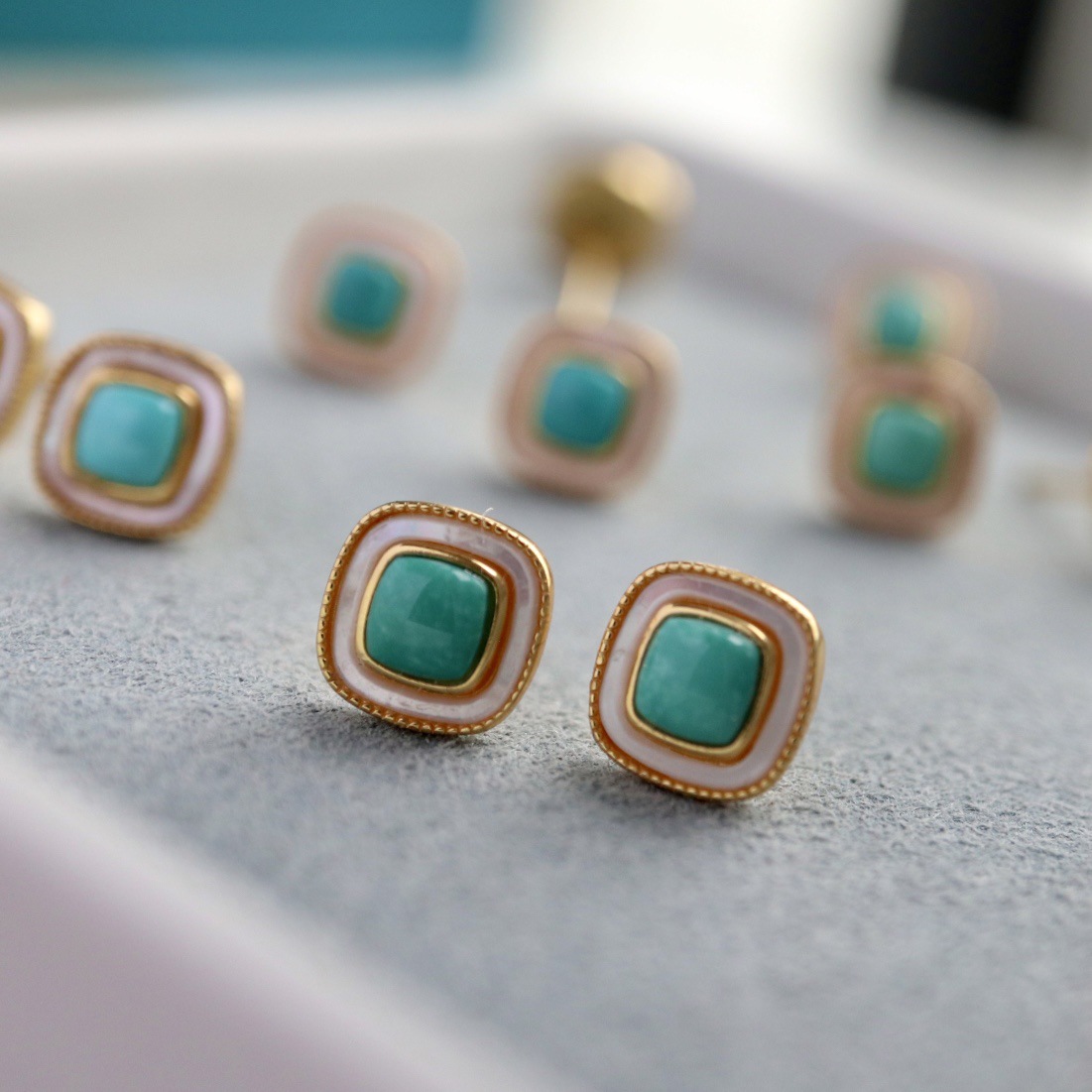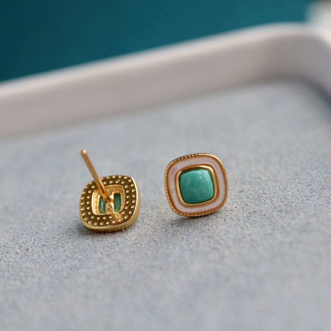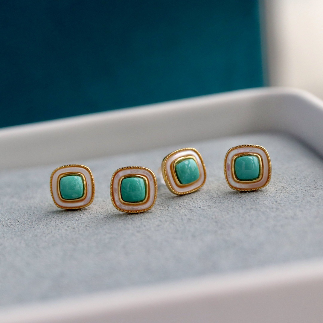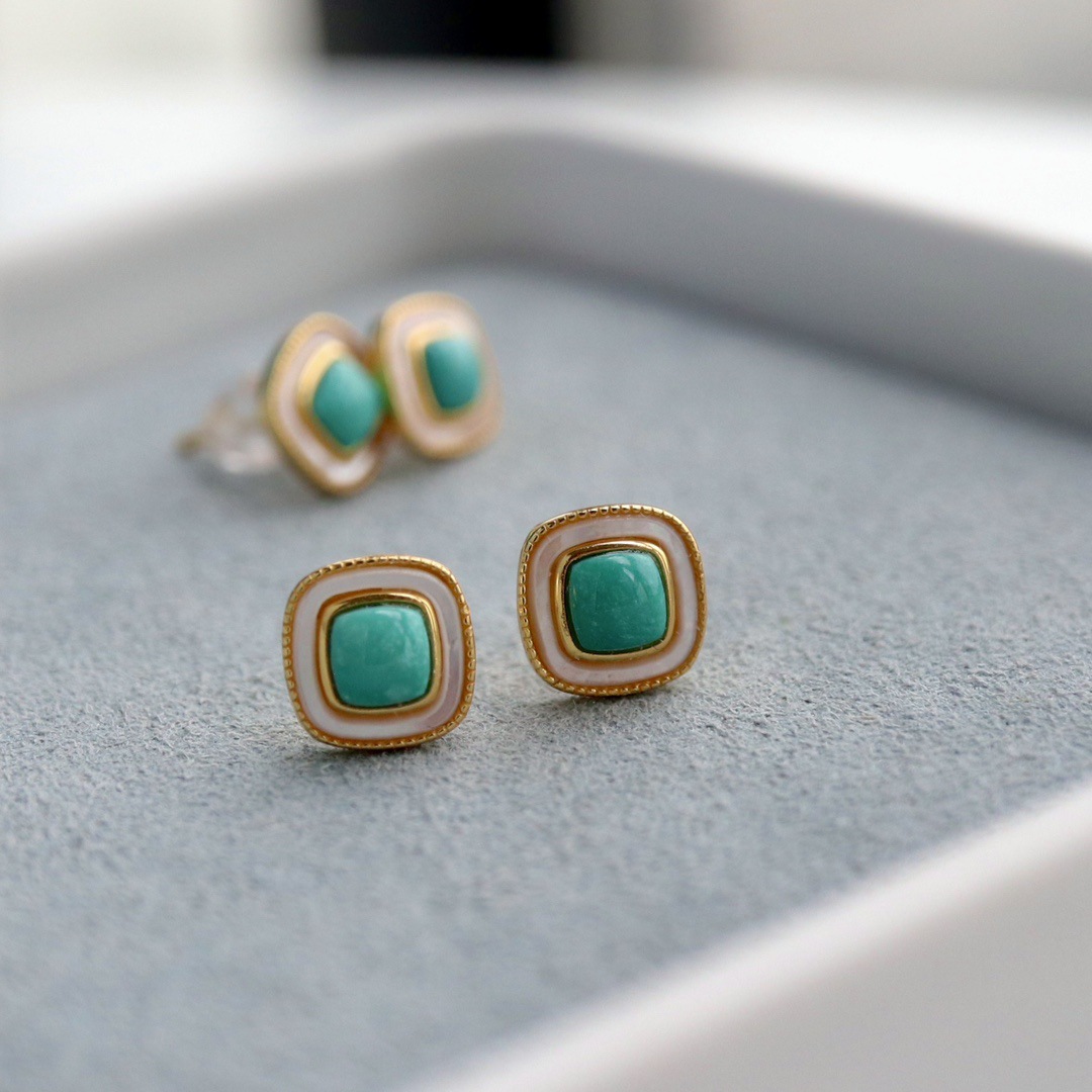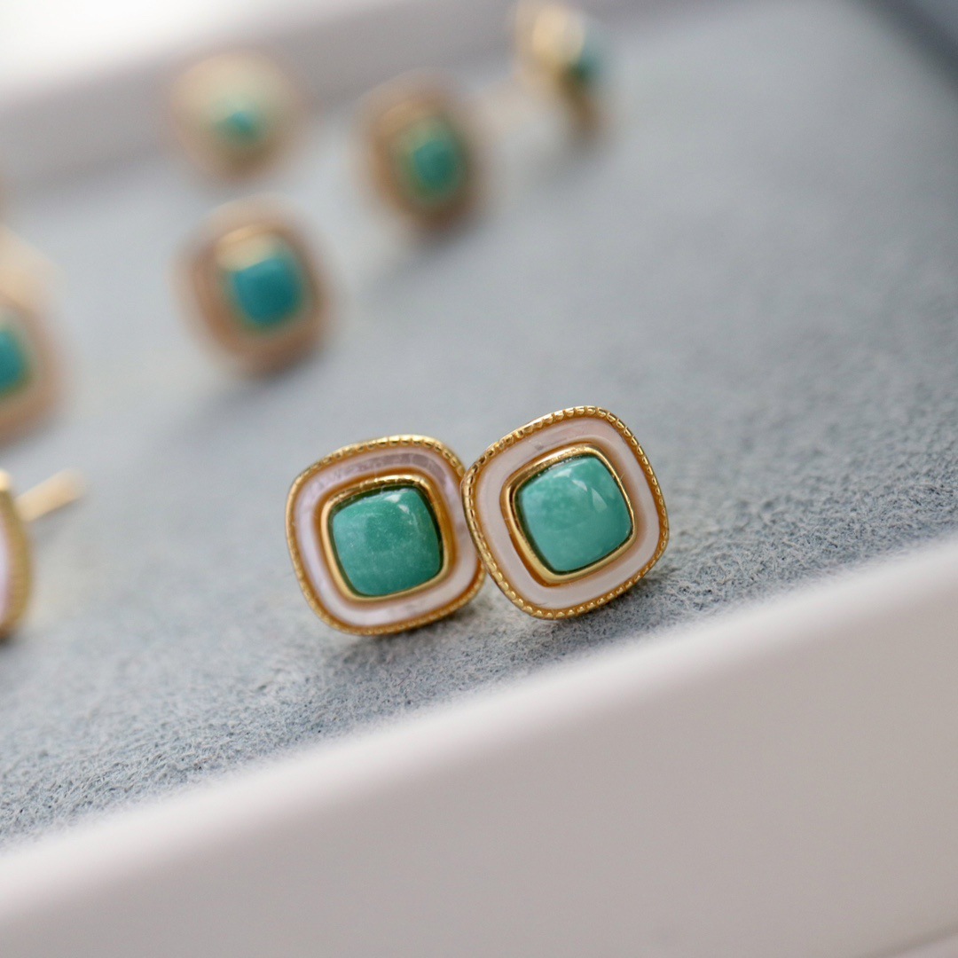 Серьги-бирюзовые из натуральной руды Hubei, серебро 925 пробы - около 8 мм.
