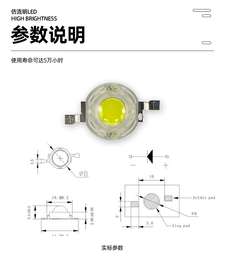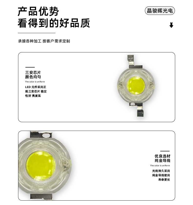 Высокая мощность 1 Вт положительный белый свет; Высокая мощность 1 Вт теплый белый свет; Высокая мощность 2 Вт белый свет; Высокая мощность 2 Вт теплый белый свет; Высокая мощность 3 Вт теплый белый свет