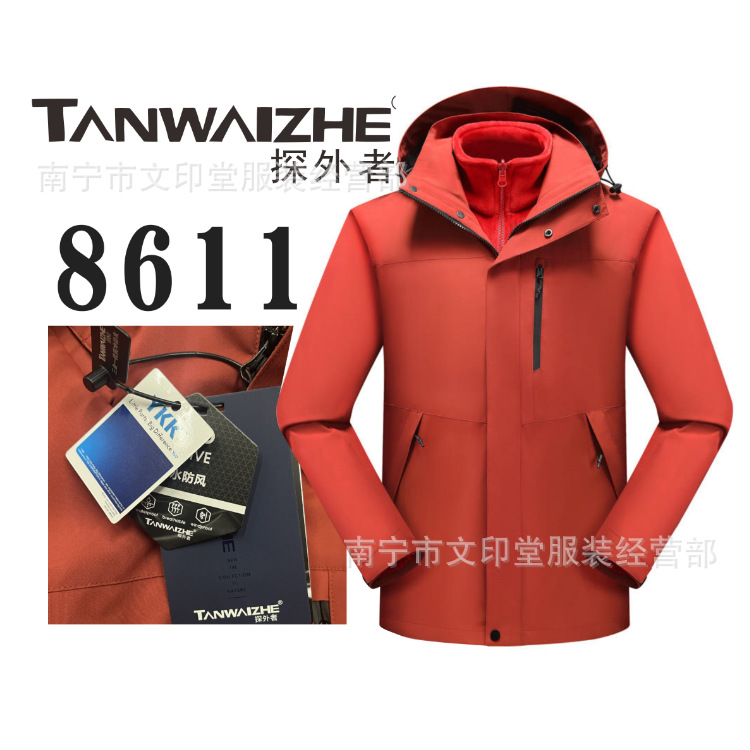 Рабочая одежда TANWAIZHE, 8611, куртка с бархатной подкладкой из серебряной лисы «три в одном», однотонная куртка, одежда для активного отдыха, рекламная куртка