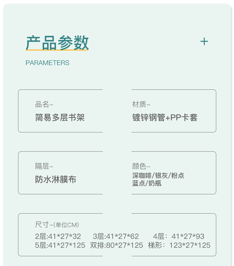 三列12格内盒尺寸:40*30*8.5CM,单件重量2.3公斤左右,外箱尺寸:44.5*42*62CM,每箱10个装,整箱重量:23.15公斤,梯形书架内盒尺寸:40*29*7.5CM,单件重量1.9公斤左右,外箱尺寸:41*40*60CM,每箱10个装,每箱重量21公斤左右,双排书架内盒尺寸:40*29*7.5CM,单件重量:1.6公斤左右,外箱尺寸:47*41*60CM,每箱12个装,整箱重量:18公斤左右,五层四格书架内盒尺寸:40-17*5.5CM,单件重量:1.1公斤左右,外箱尺寸:41*41*60CM,每箱21个装,整箱重量:20.1公斤左右,四层三格书架内盒尺寸:40*17*5.5CM,单件重量:0.9公斤左右,外箱尺寸:41*41*60CM,每箱21个装,每箱重量20.5公斤左右