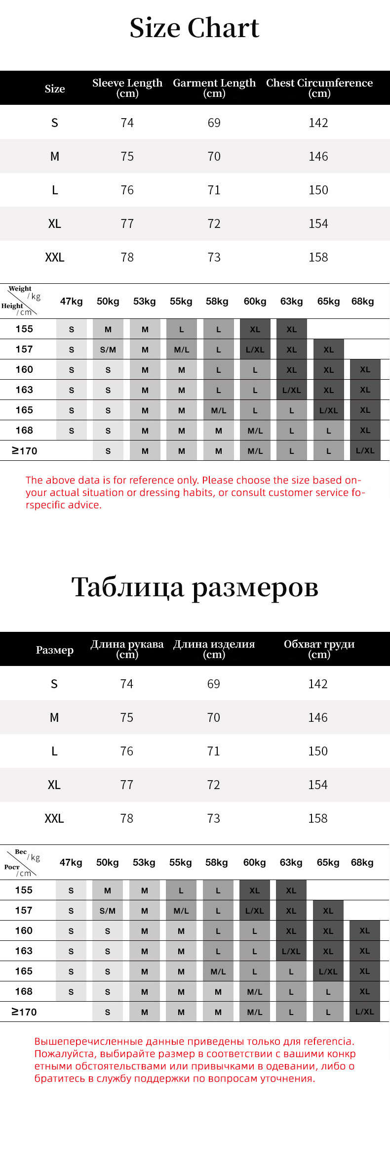S; M; L; XL; XXL