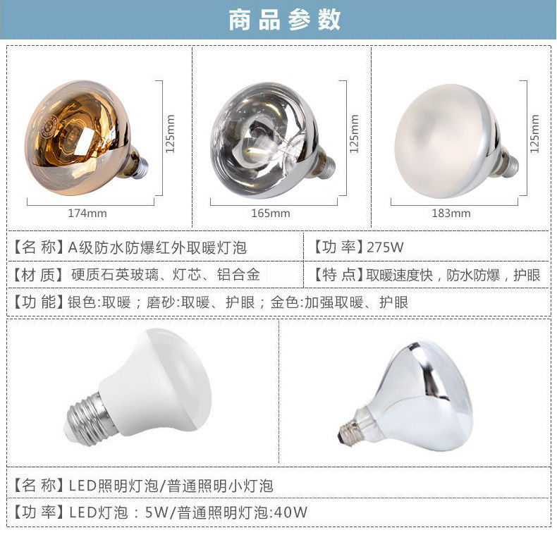 Серебряная лампа для обогревателя ванной комнаты 165 мм, 275 Вт, инфракрасная водонепроницаемая универсальная теплая старомодная лампа для ванной комнаты, грелка
