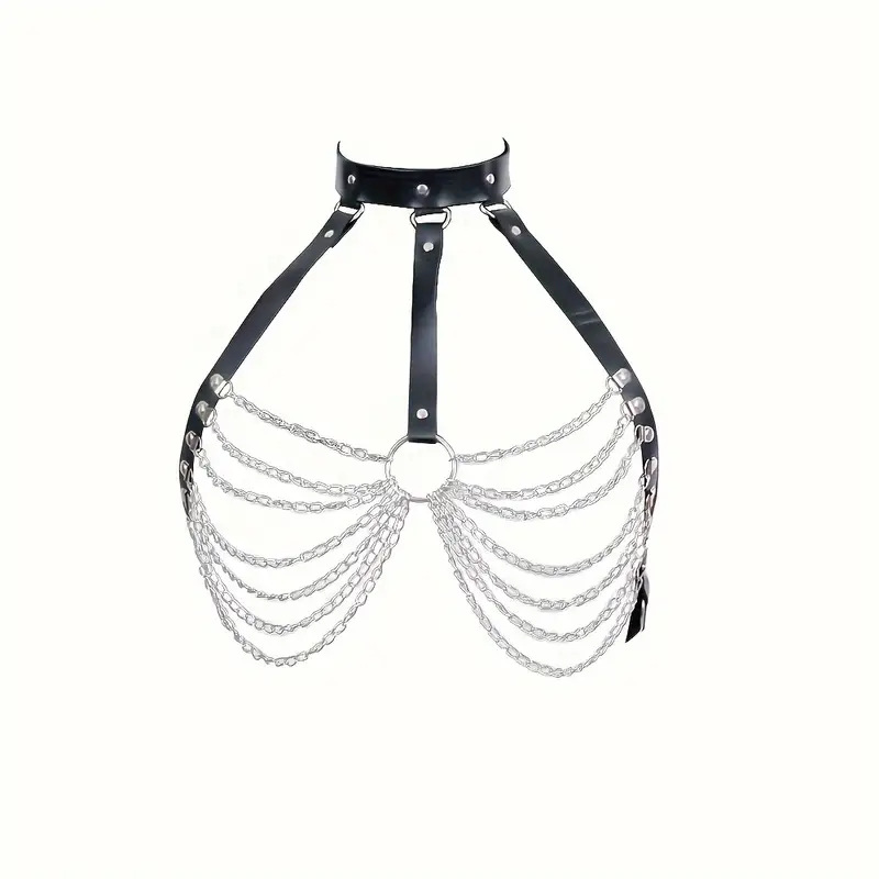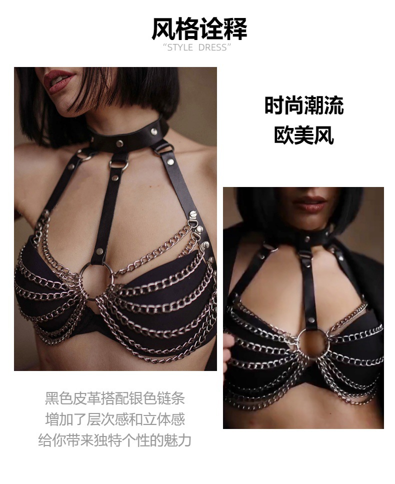 Европейский и американский взрывной сексуальный ремень с бахромой металлическая цепочка ремень для женщин полый PU кожаный бюстгальтер готический чехол