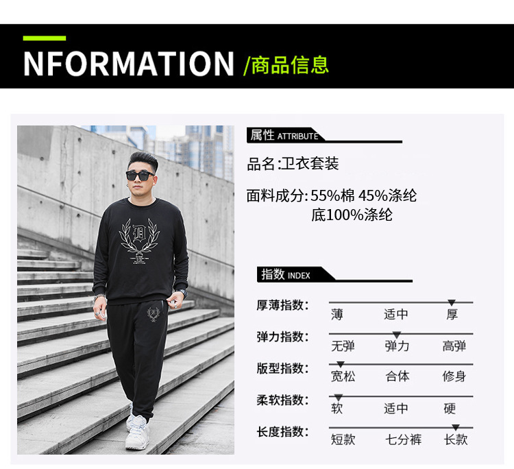 DW1012-DK2012 большой размер 400 кг спортивный хлопок высокого роста длинная версия набор толстых свитерских брюк мужской