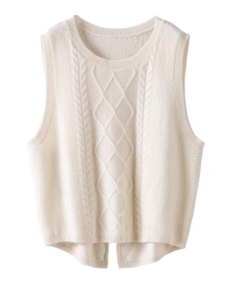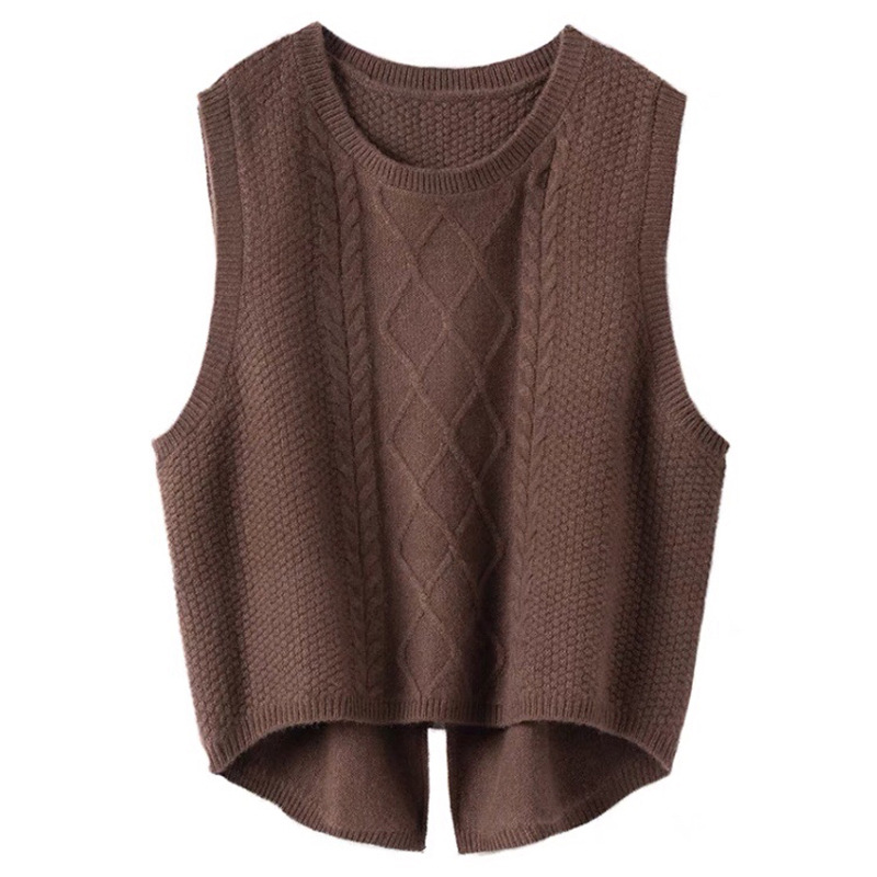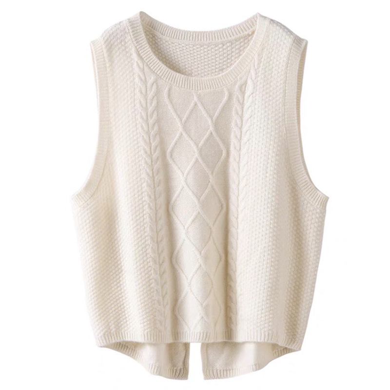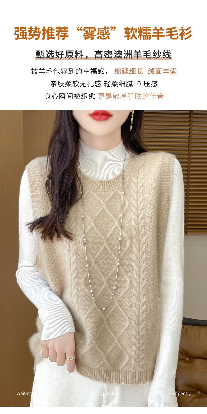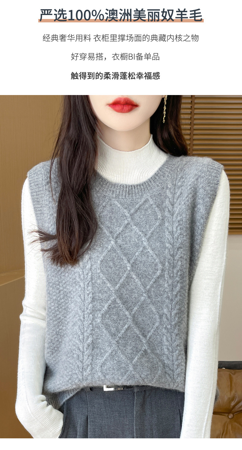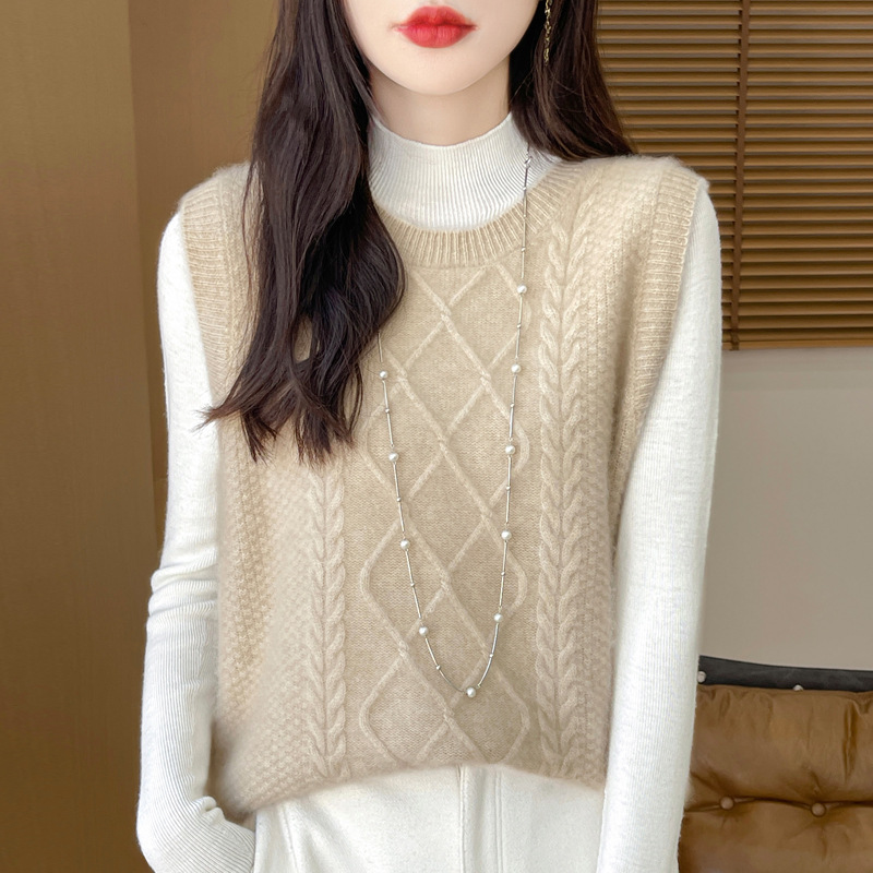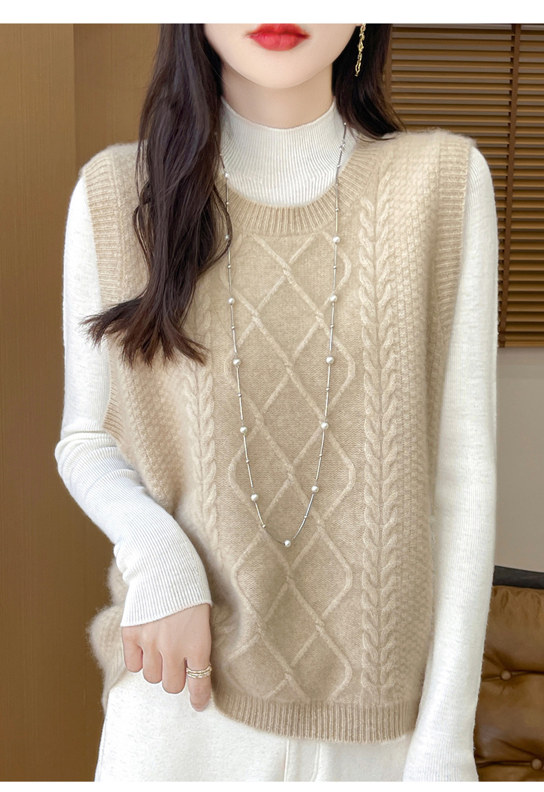 Женский вязаный жилет без рукавов из 100% шерсти, осенне-зимняя новинка 2025 года, с круглым вырезом, узором «косы», короткий, трикотажный