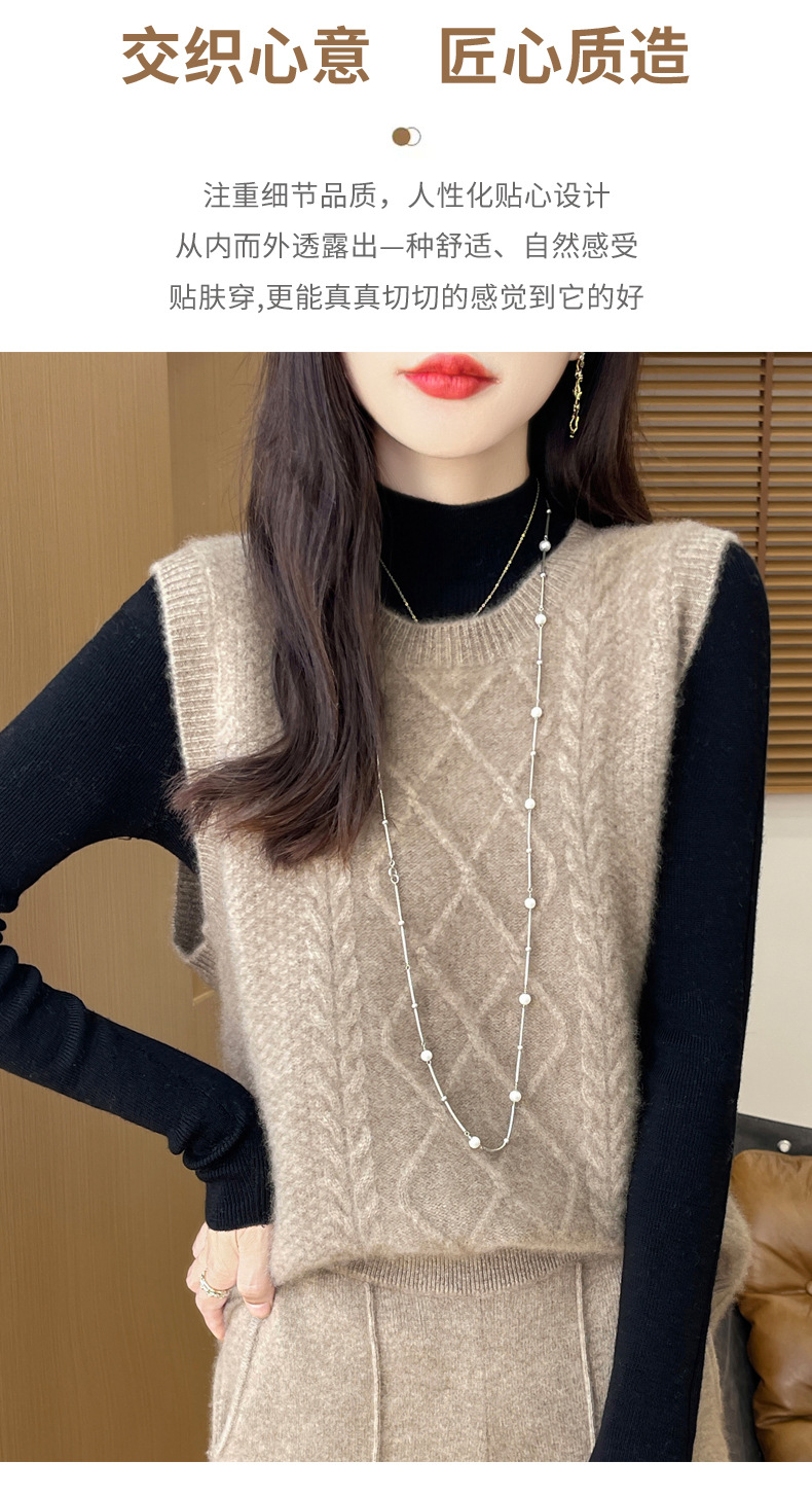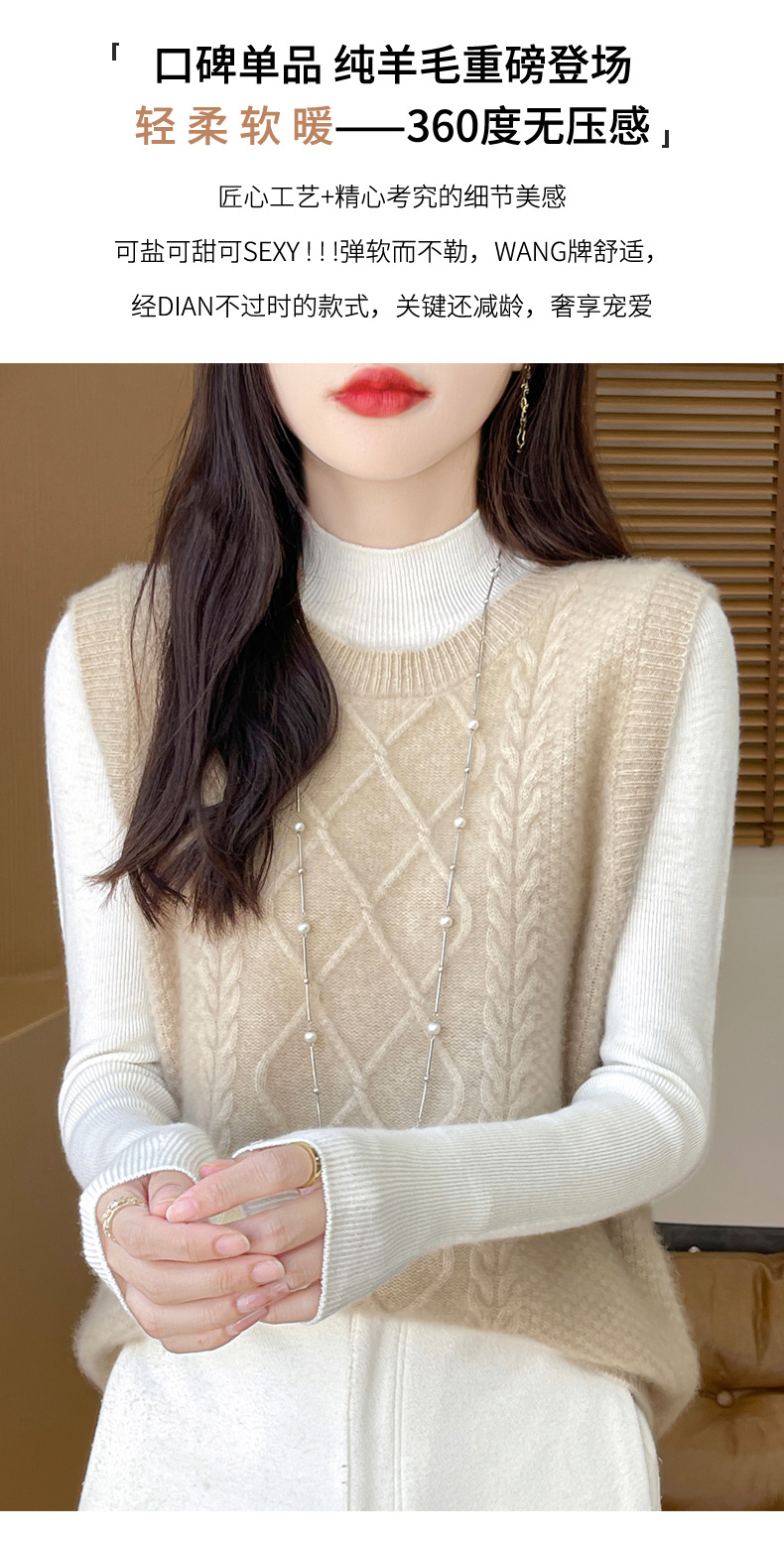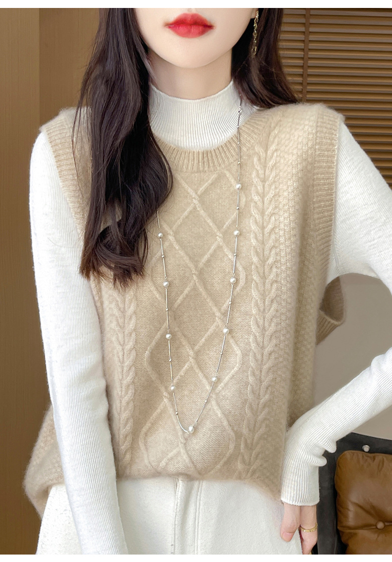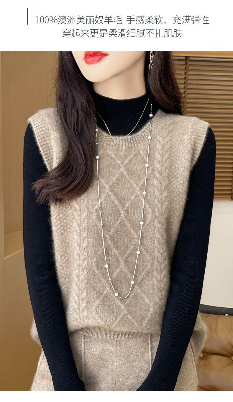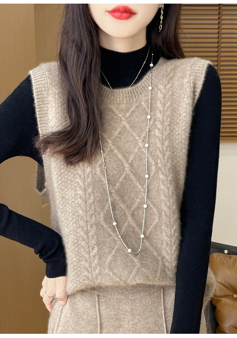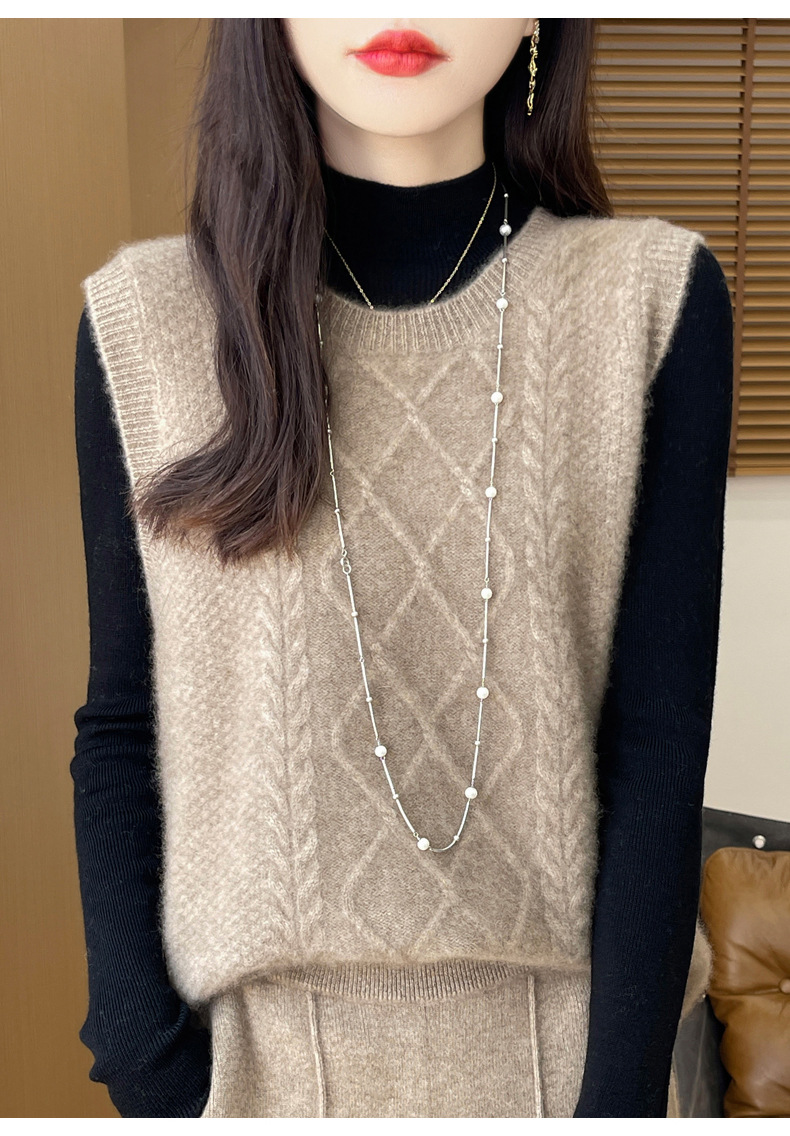 Женский вязаный жилет без рукавов из 100% шерсти, осенне-зимняя новинка 2025 года, с круглым вырезом, узором «косы», короткий, трикотажный