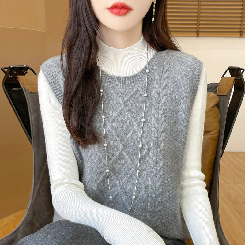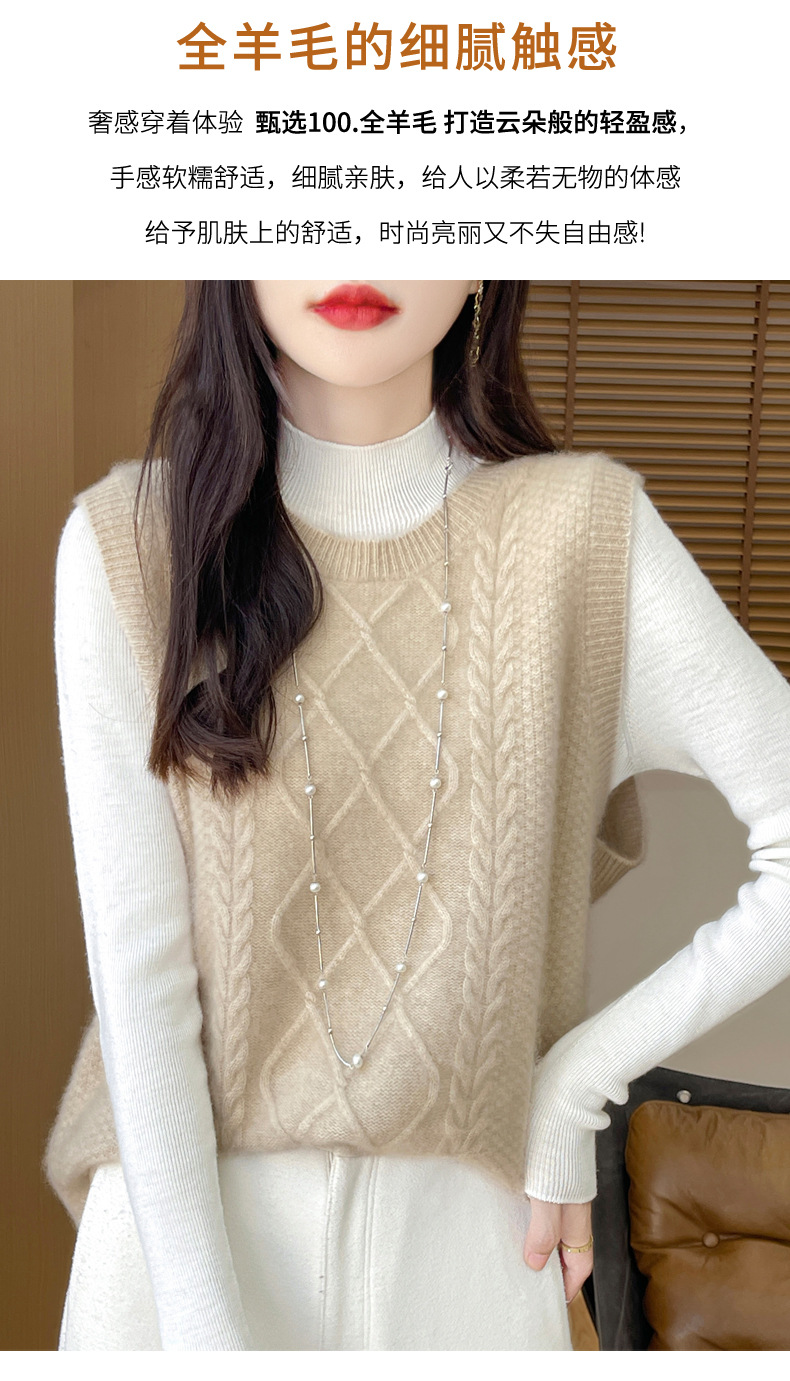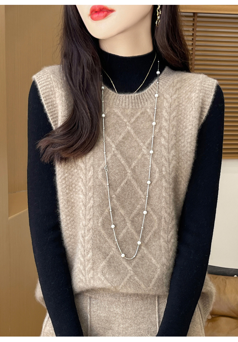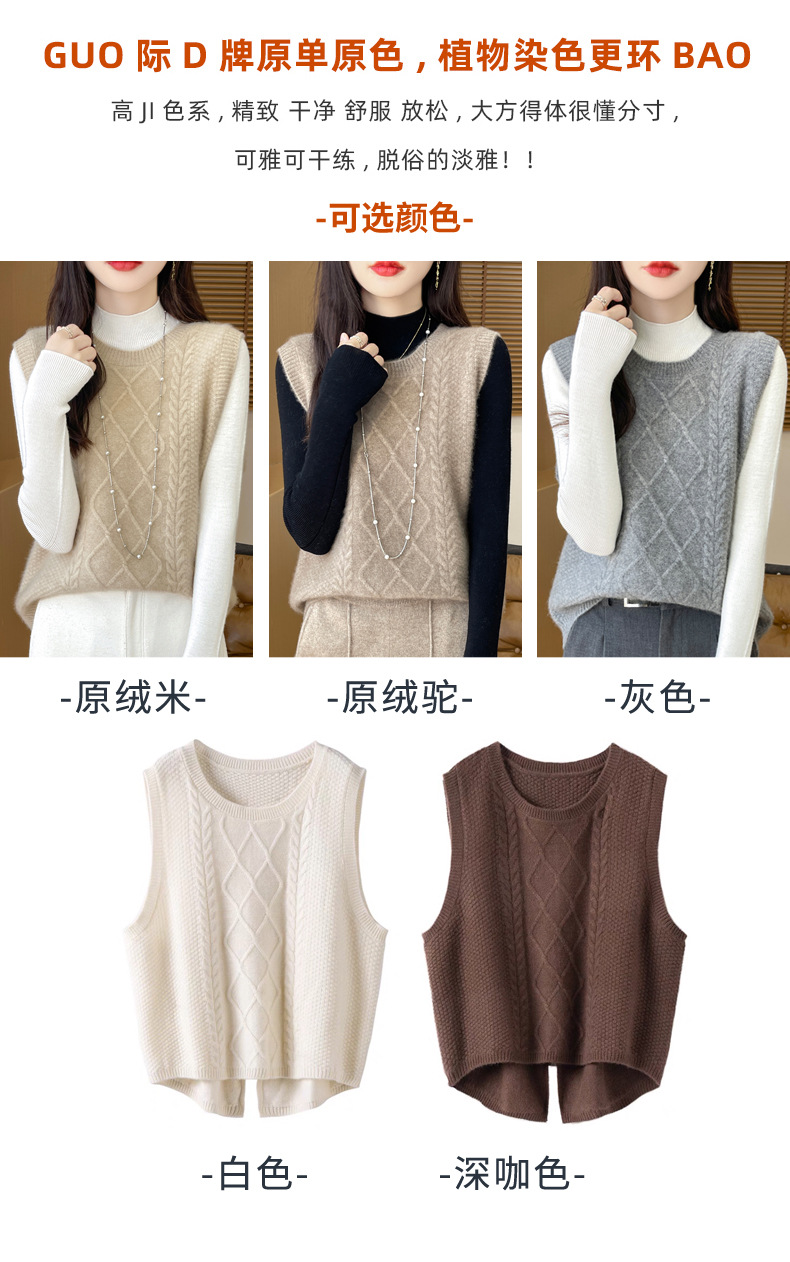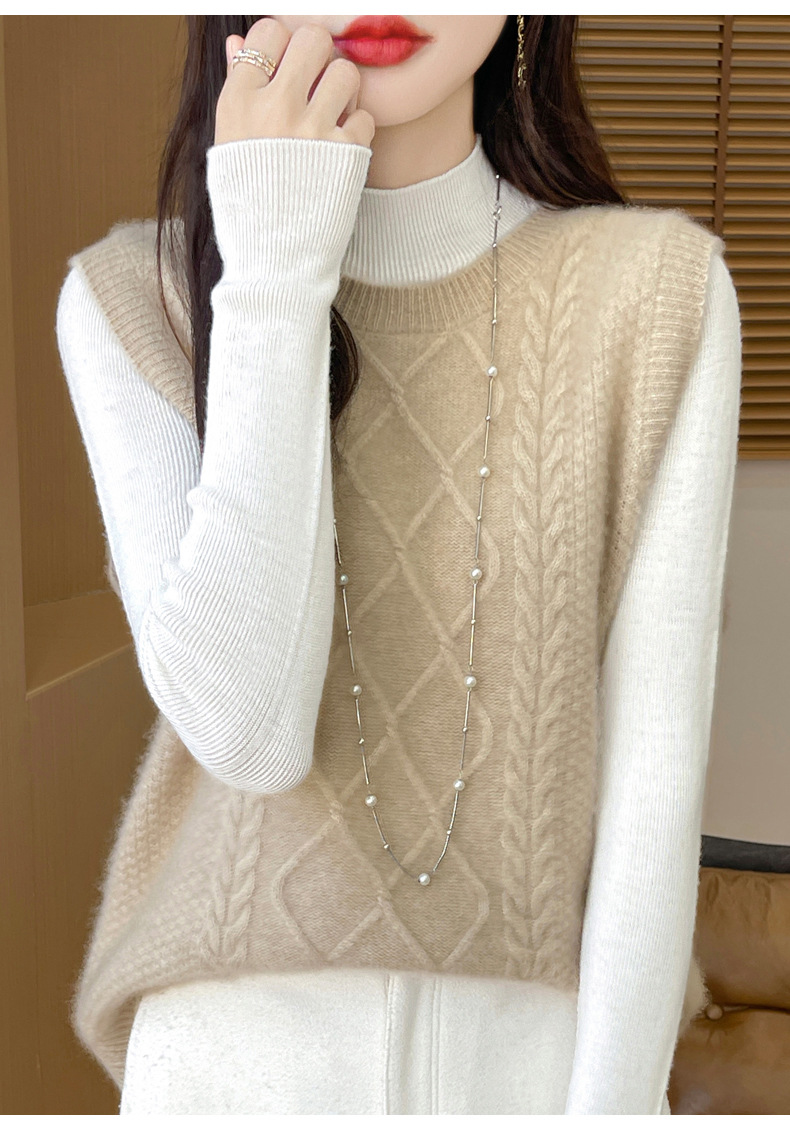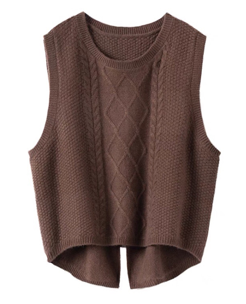 Женский вязаный жилет без рукавов из 100% шерсти, осенне-зимняя новинка 2025 года, с круглым вырезом, узором «косы», короткий, трикотажный