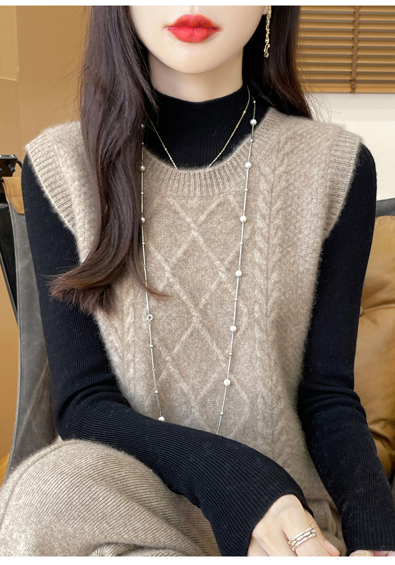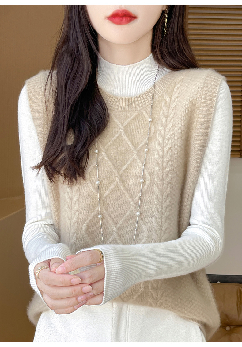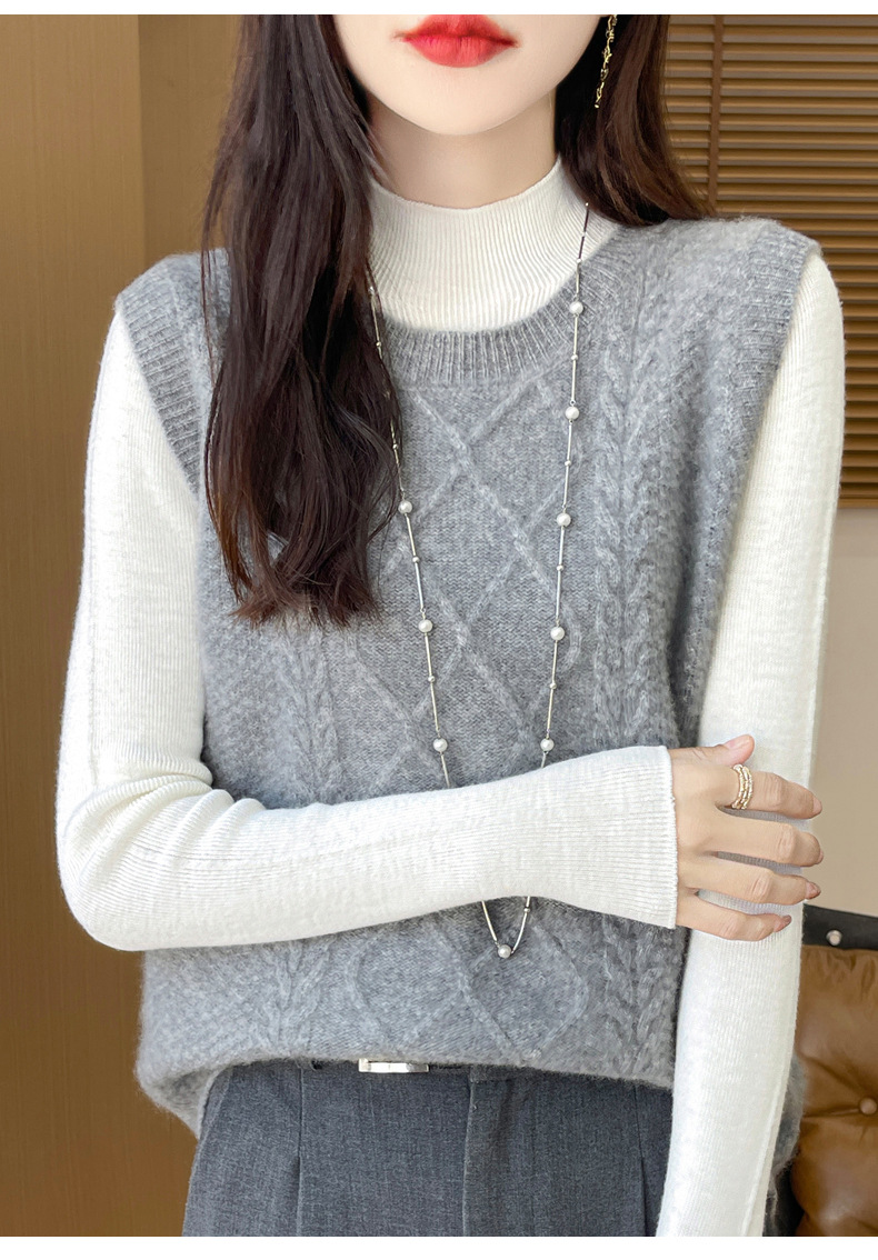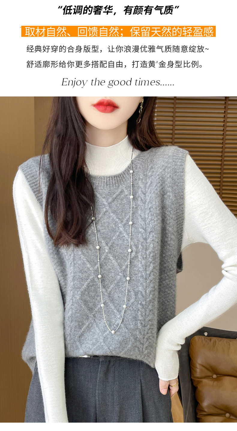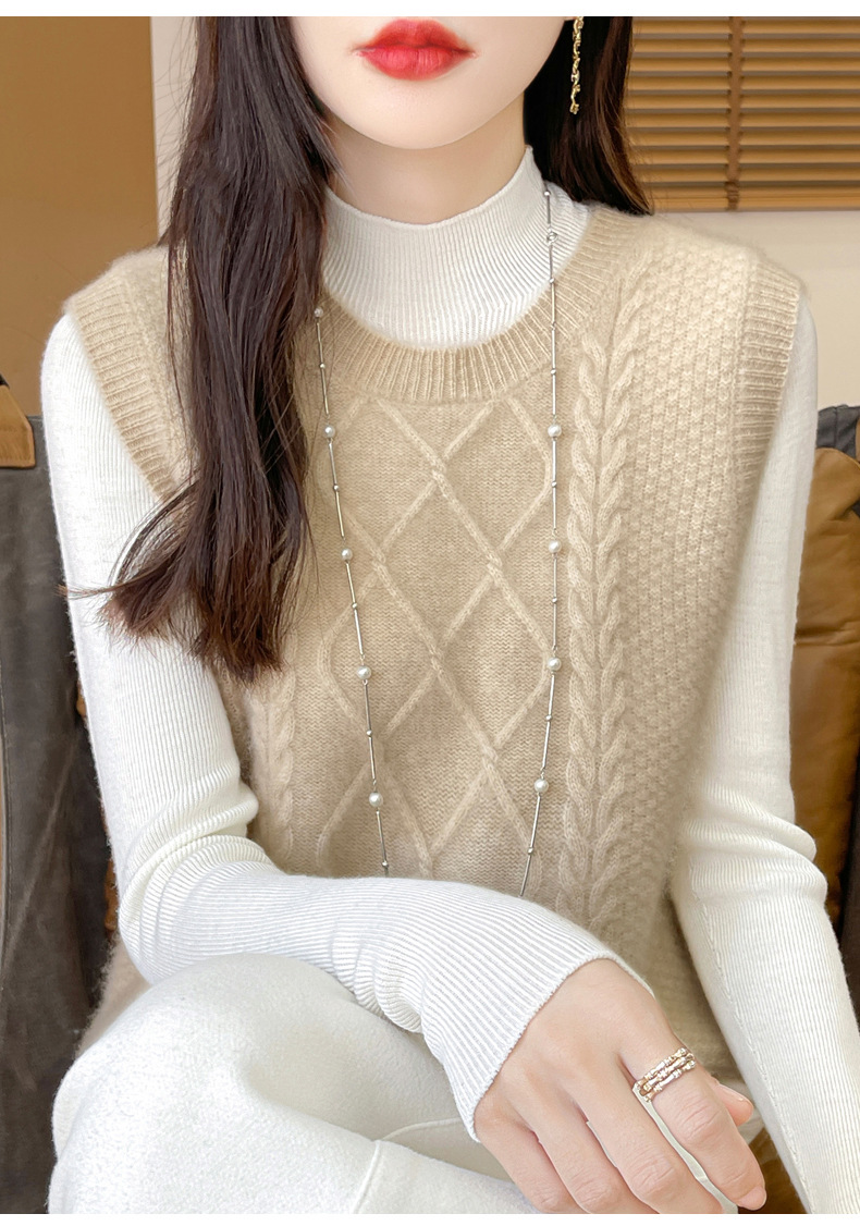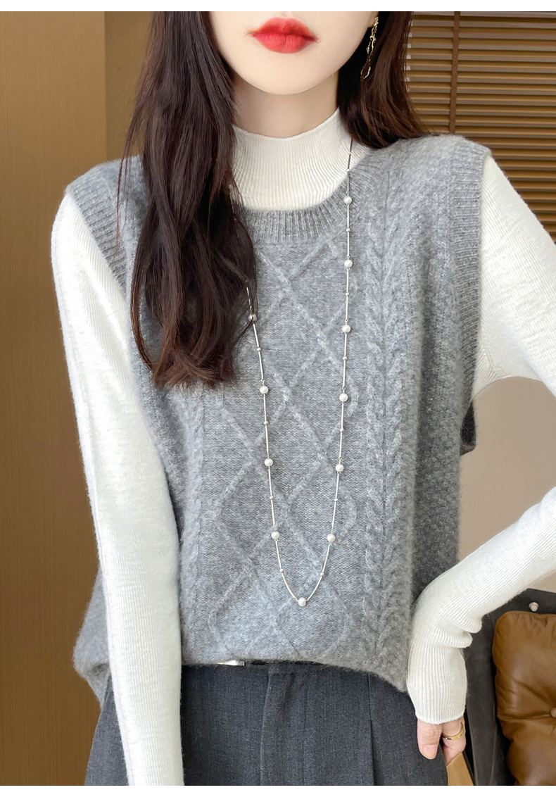 Женский вязаный жилет без рукавов из 100% шерсти, осенне-зимняя новинка 2025 года, с круглым вырезом, узором «косы», короткий, трикотажный