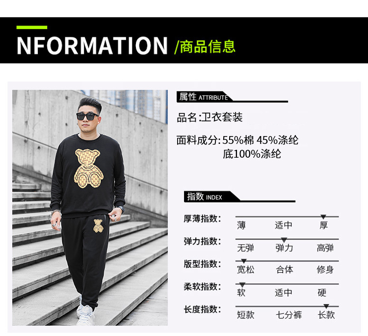 DW1002-DK2002 большой размер 400 кг спортивный хлопок высокого роста длинная версия набор толстых свитерских брюк мужской
