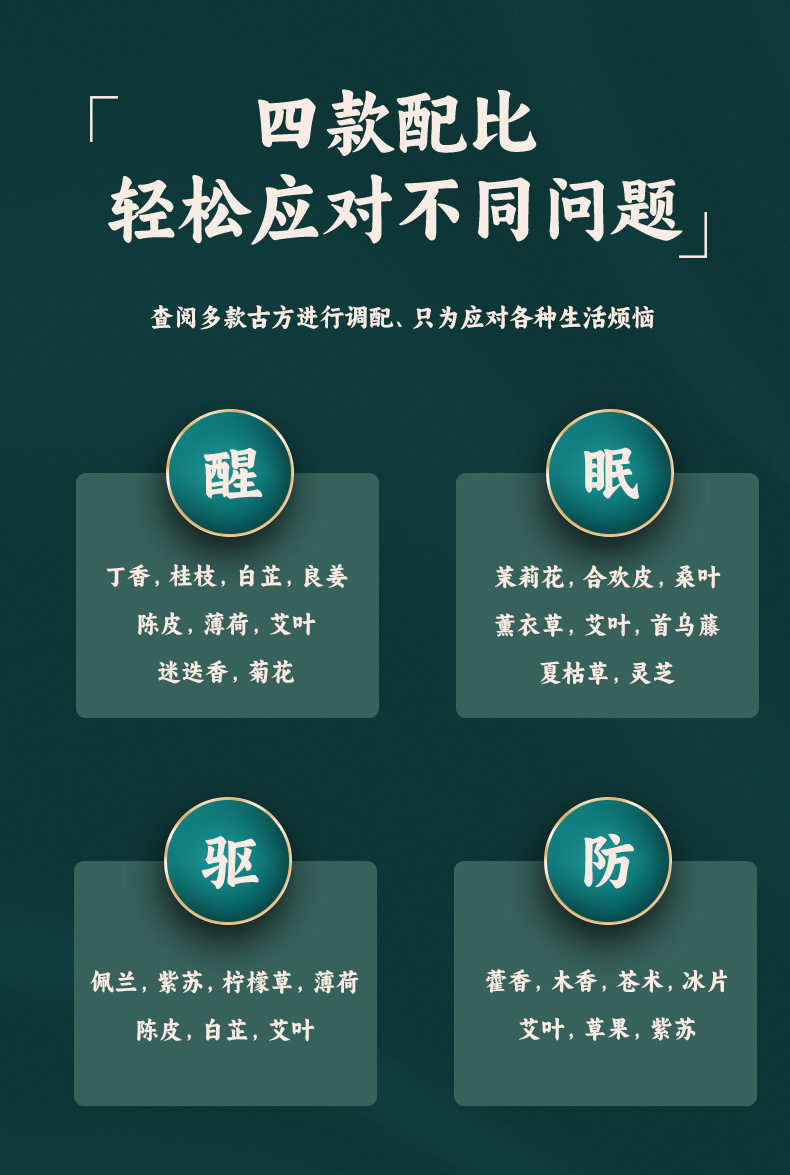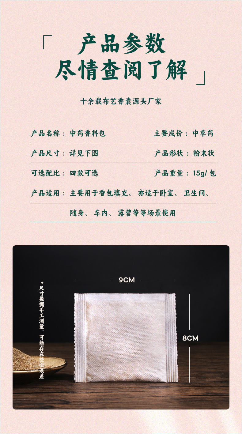 Порошковая упаковка чистой китайской медицины (антисенс); Порошок чистой китайской медицины (средство от комаров); Порошок чистой китайской медицины (освежающий); Порошок чистой китайской медицины (успокаивающий); Порошковый мешок Ай; (Освежающий) Мятный вкус; Аншэн (лавандовый вкус); Репеллент от комаров (аромат цитронеллы); аромат сандалового дерева; Сильный аромат ванили