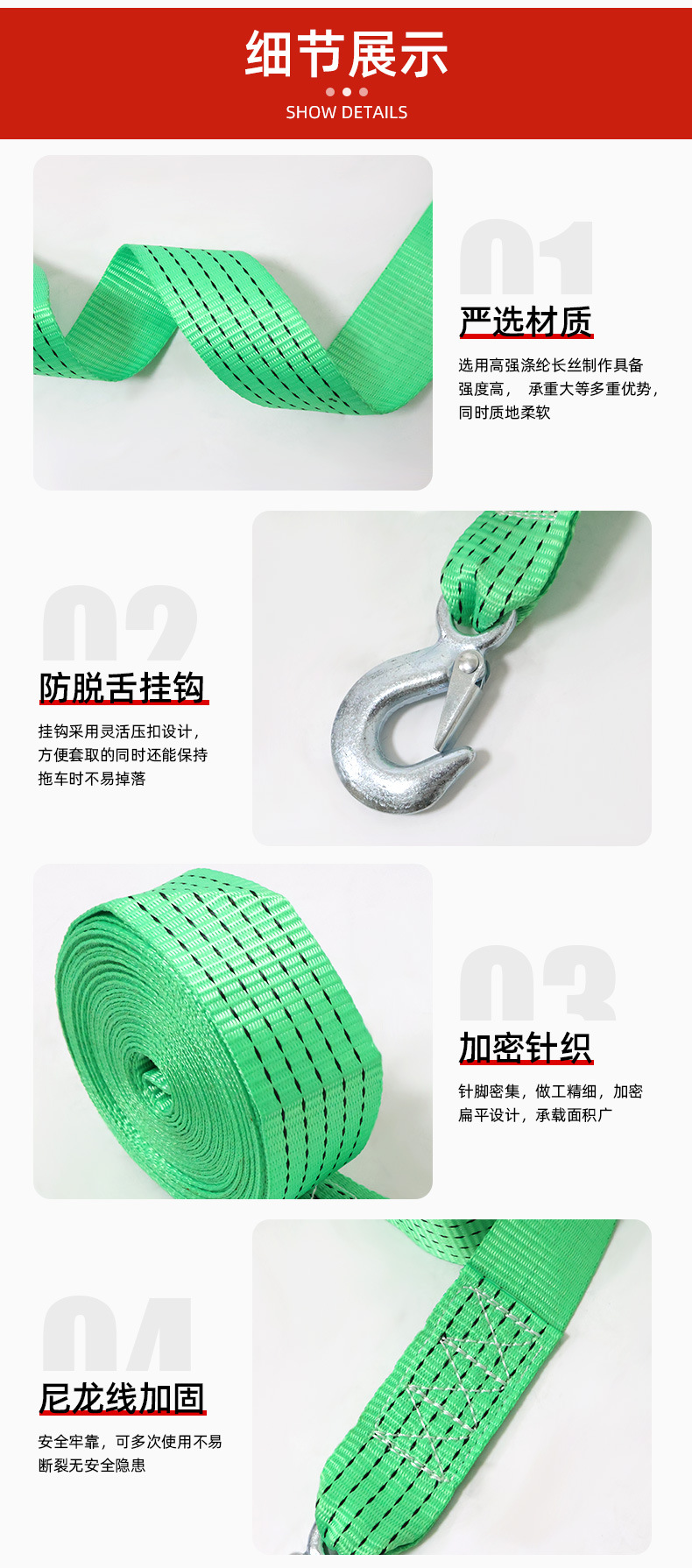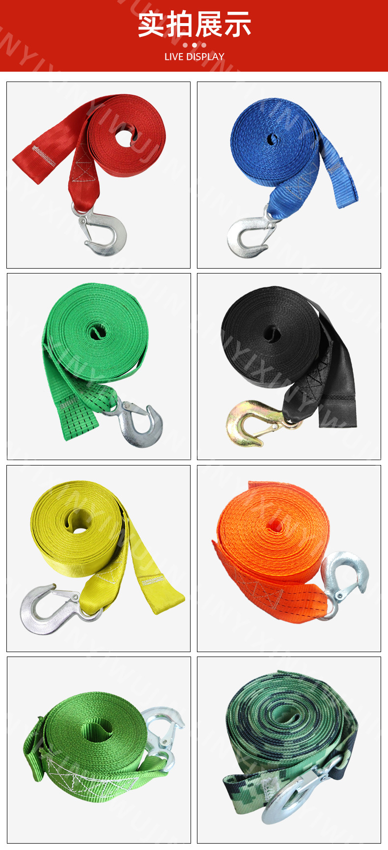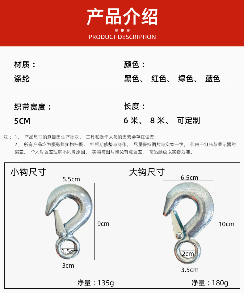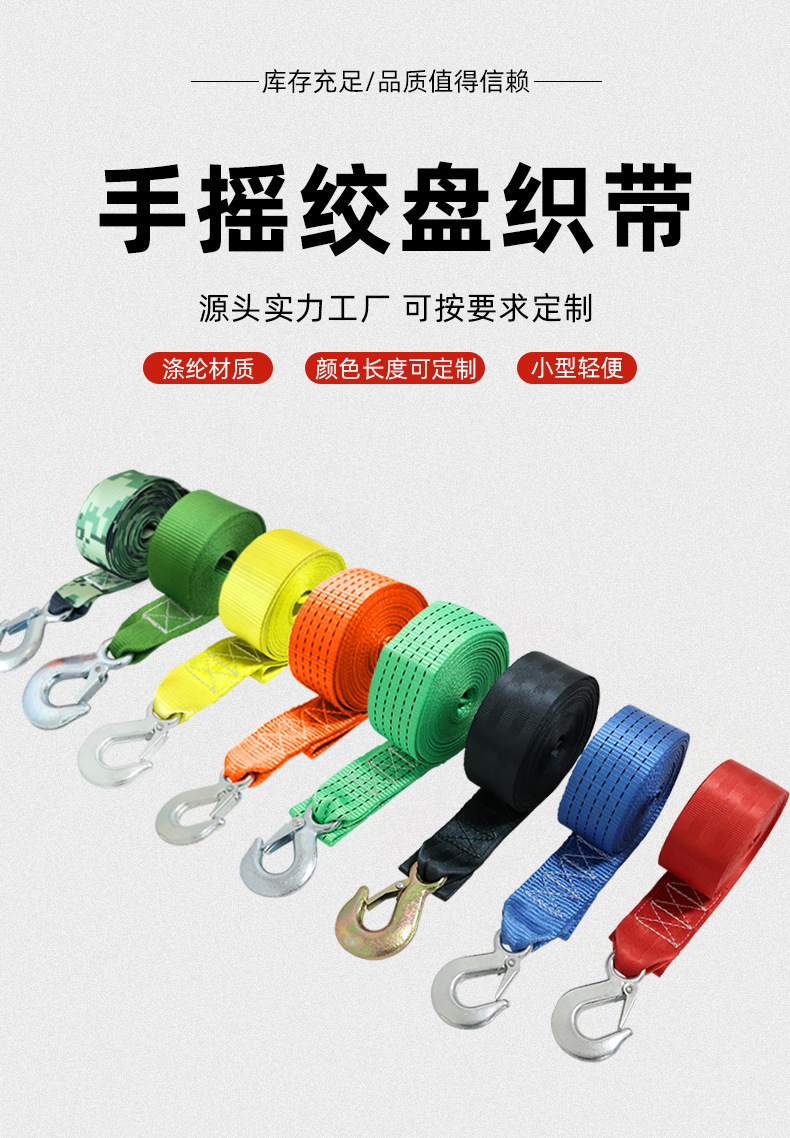 Цветная тканая лента для лебедок, ручные портативные быстросъемные ремни с большими и маленькими крюками, самоблокирующиеся, для универмагов.