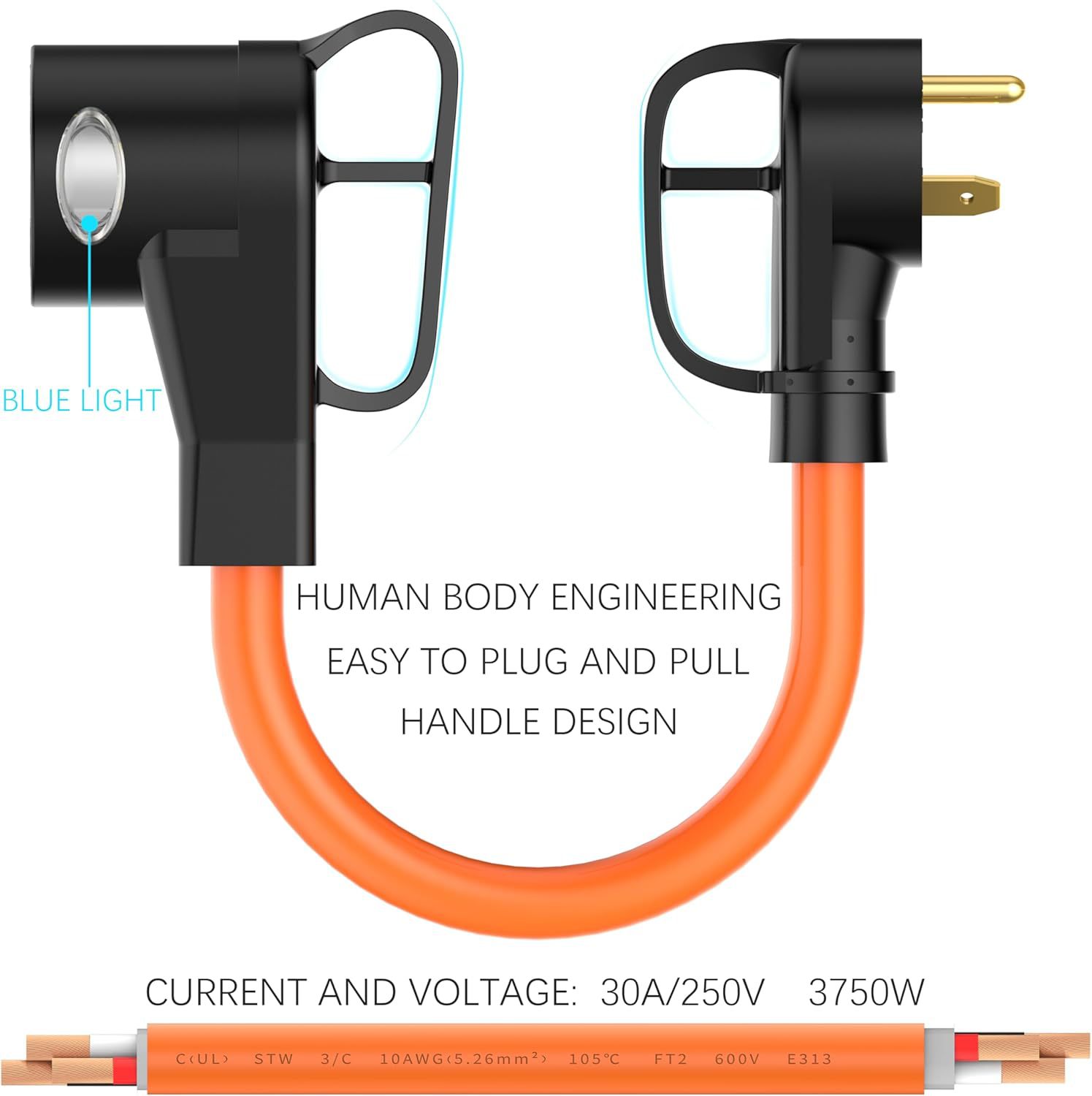 NEMA TT-30P на 14-50R Адаптер генератора для автофургонов типа Twist Lock с индикаторной лампой, 30 А