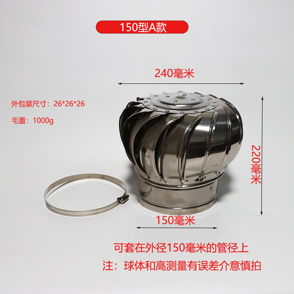 Вентилятор вытяжной центробежный безмоторный для цеха, воздухоотводчик из нержавеющей стали, ветровая шайба