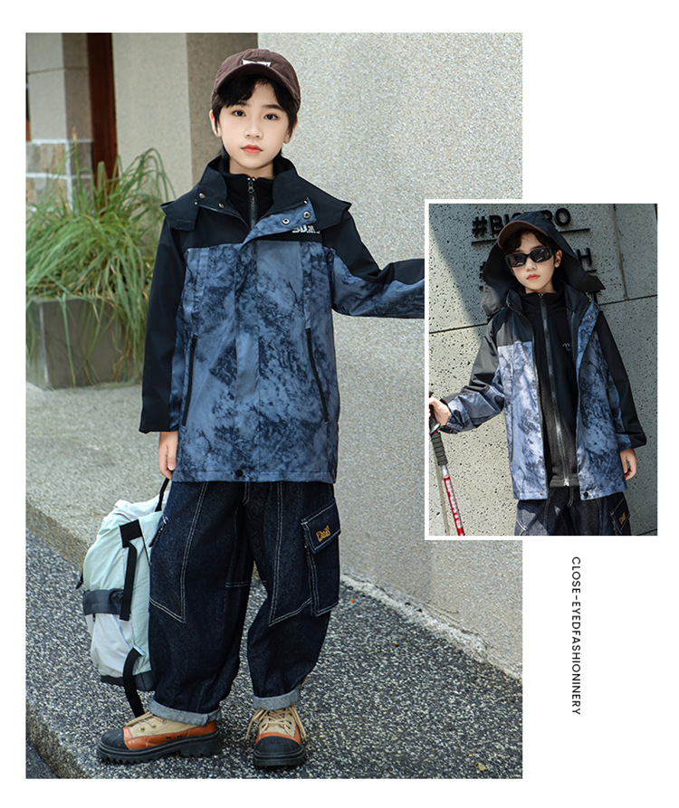 Куртка для мальчиков 2024 весна и осень новый открытый три в одном осенний топ для мальчиков осенняя одежда