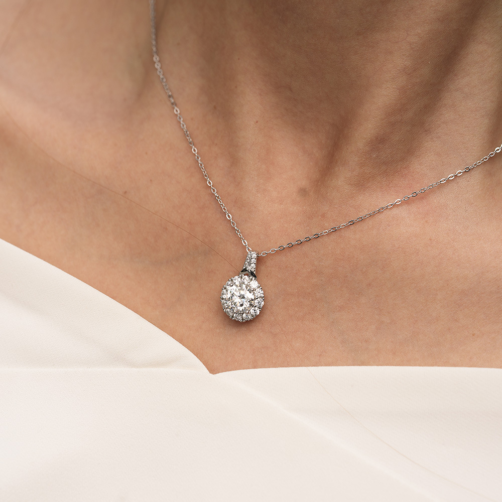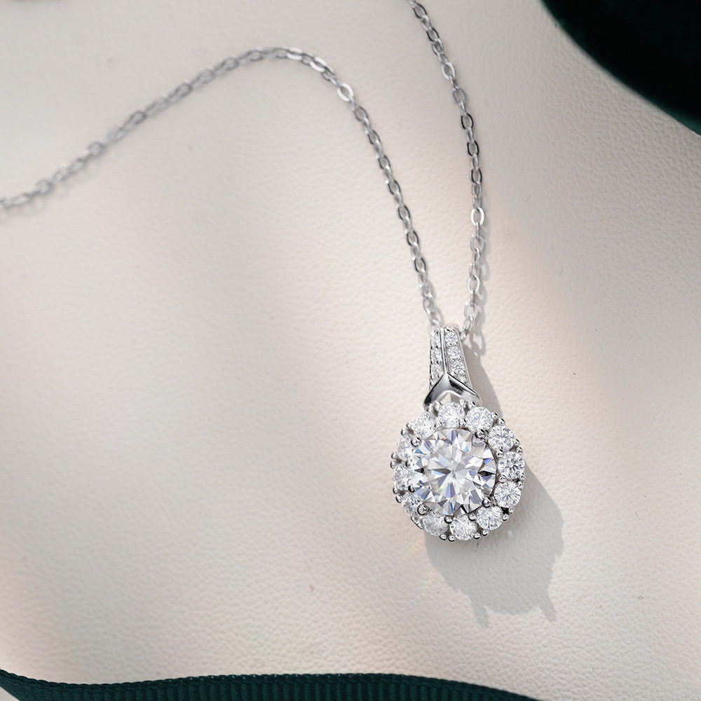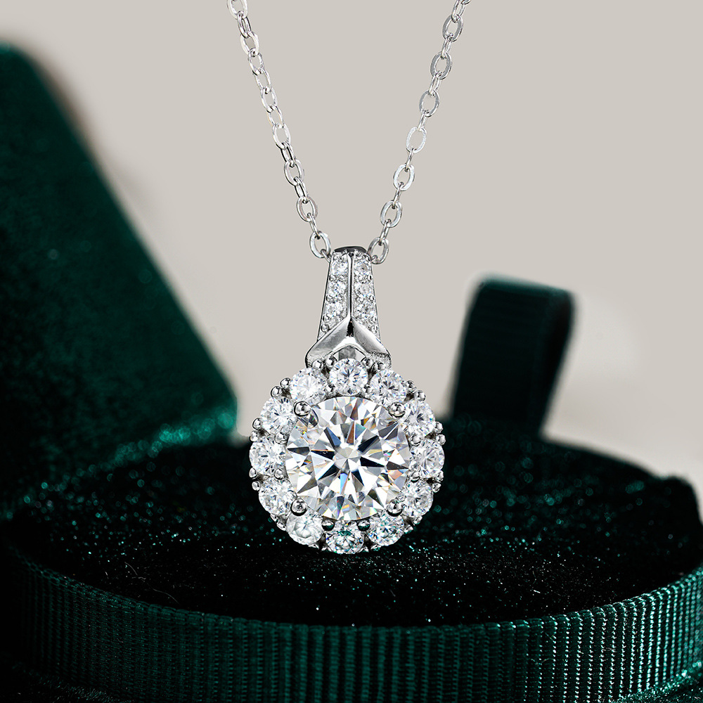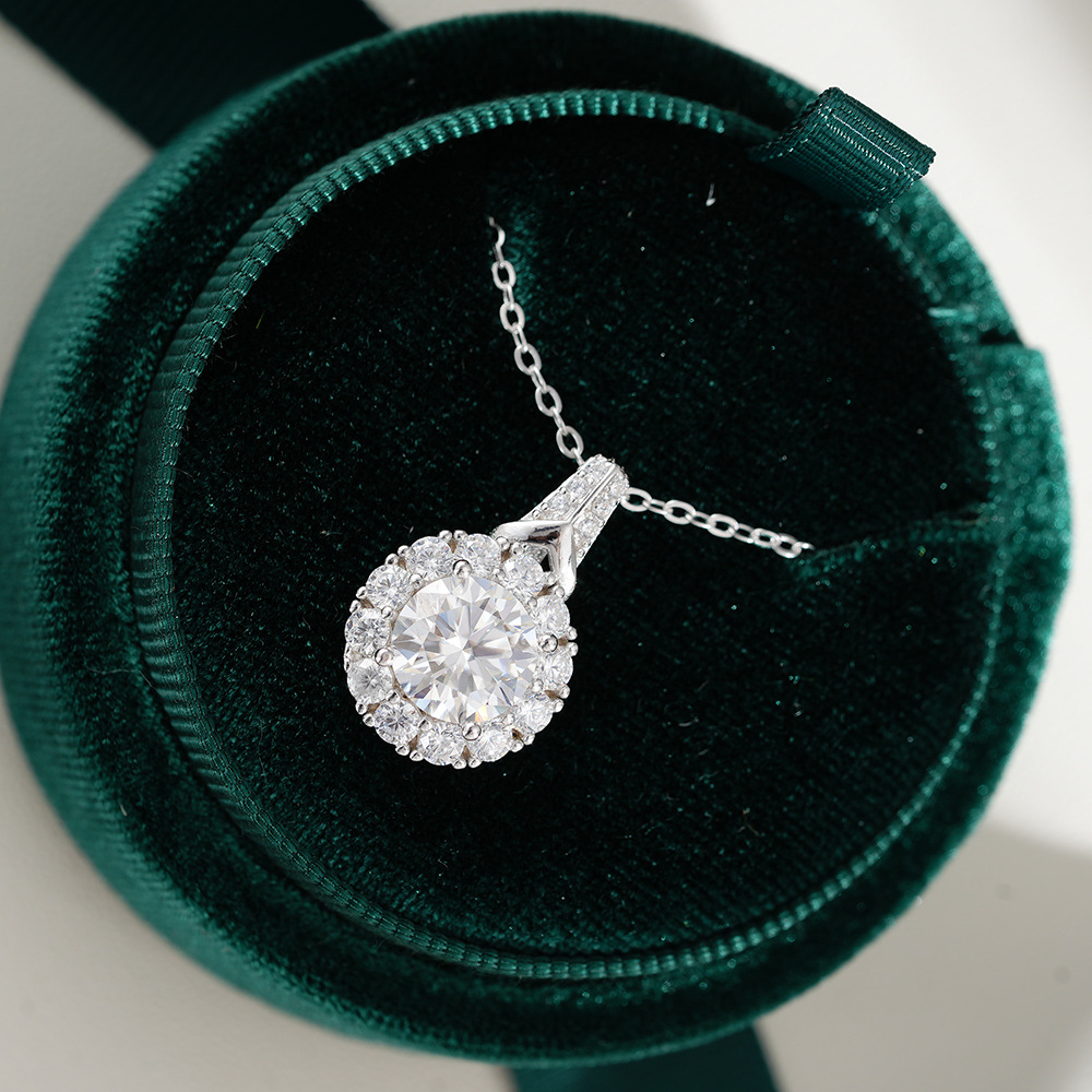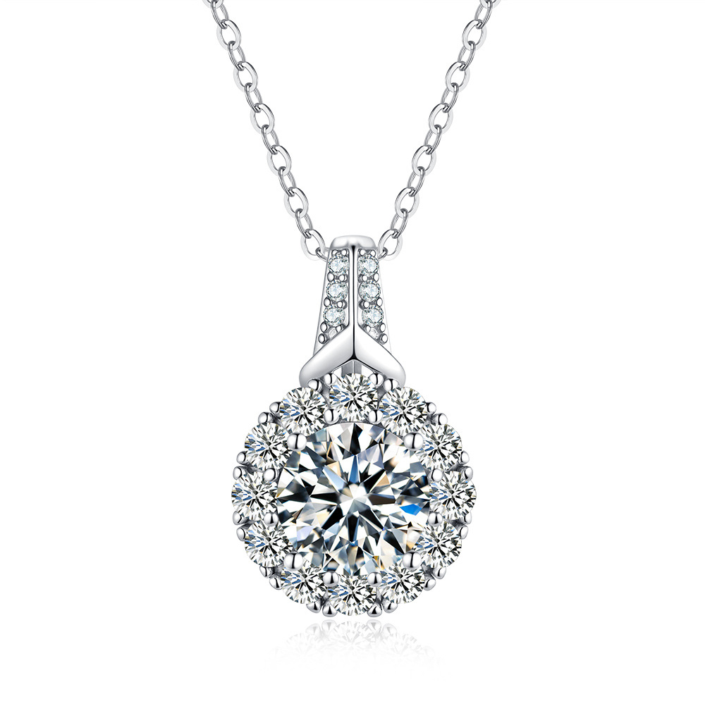 S925 Серебряный кулон 2 карат Мосан бриллиантовое ожерелье женская мода круглый мешок новый серебряный кулон ключицы цепи