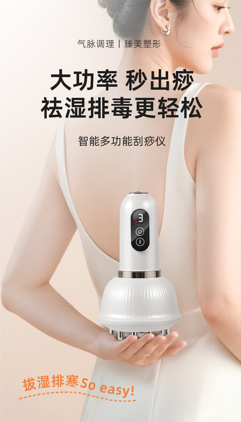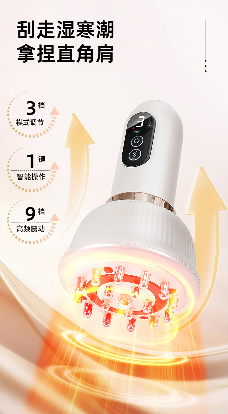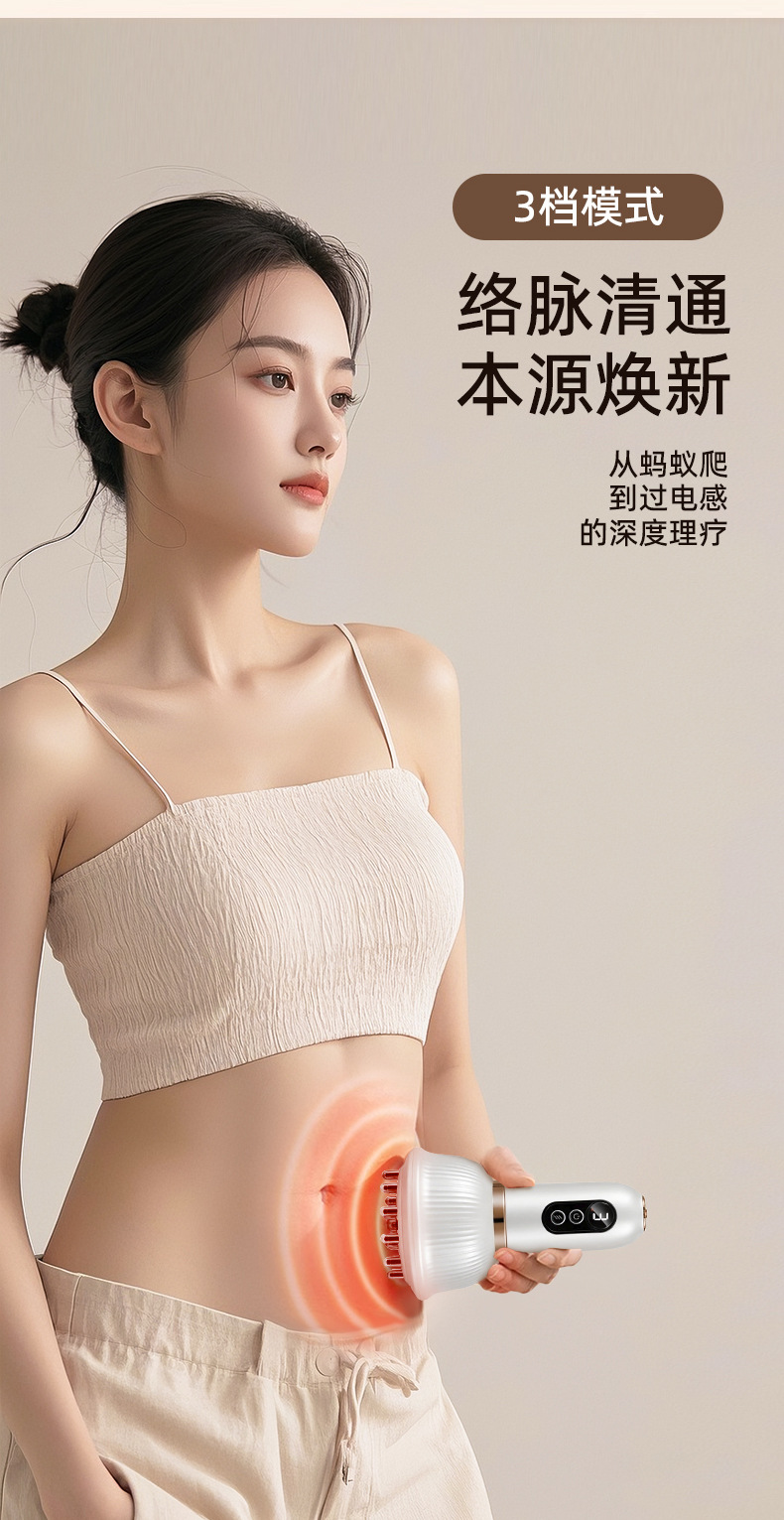 Многофункциональный электрический массажер гуаша с импульсной тепловой терапией для живота и всего тела, перезаряжаемый массажер-щетка для меридианов для домашнего использования.
