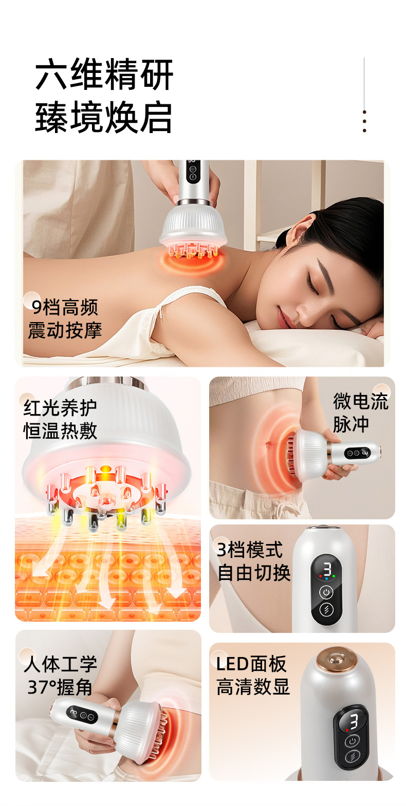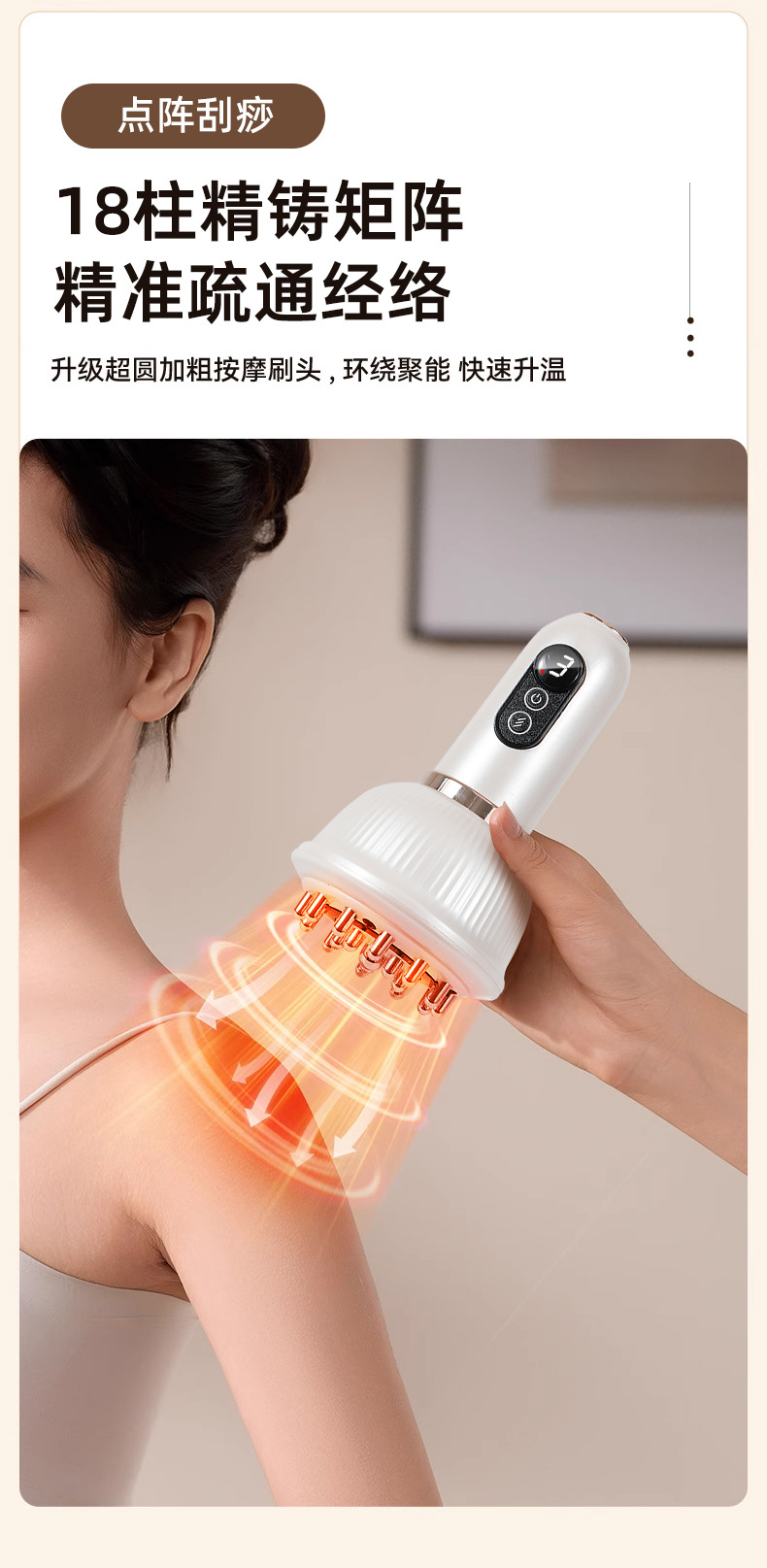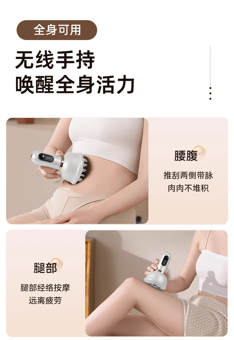 Многофункциональный электрический массажер гуаша с импульсной тепловой терапией для живота и всего тела, перезаряжаемый массажер-щетка для меридианов для домашнего использования.