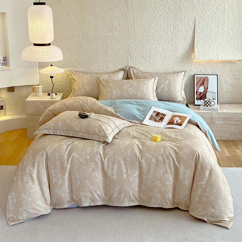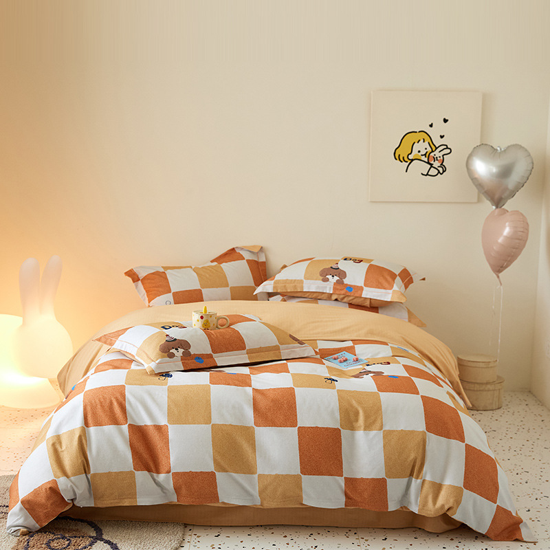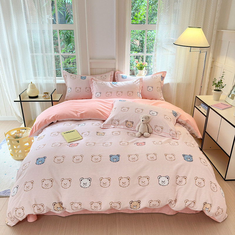 Осенне-зимний комплект постельного белья из четырех предметов: чехол для одеяла и простыня из чистого хлопка с начесом, комплект из трех предметов, полностью хлопковое постельное белье, Nantong Home Textiles