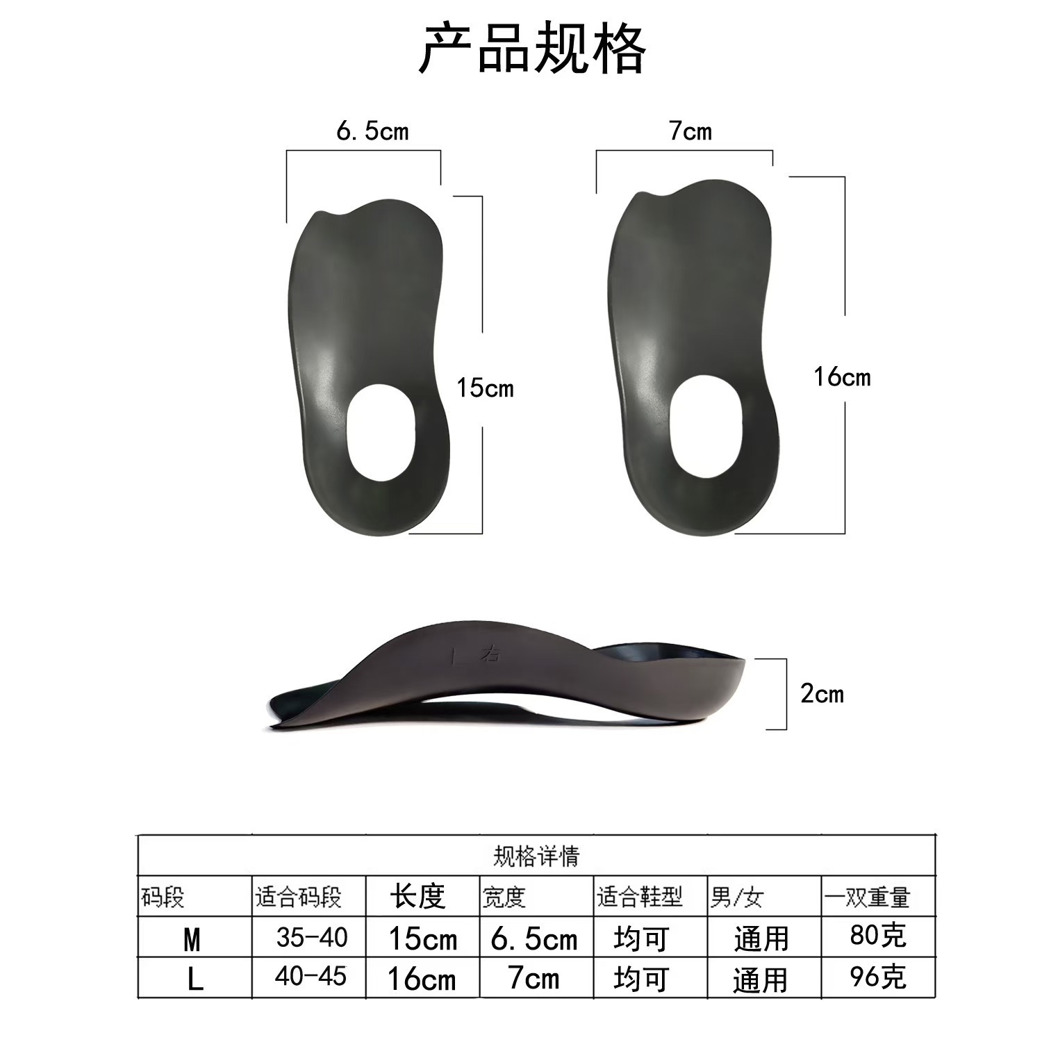 1.产品名称:新款足弓矫正半垫