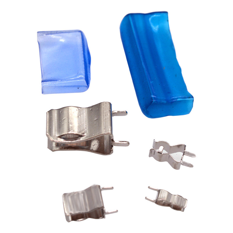Зажим 3,6*10 мм (толщина 0,4 мм); Зажим 5*20 мм (толщина 0,3 мм); Зажим 5*20 мм (толщина 0,4 мм); Зажим 5*20 мм (толщина 0,5 мм); Зажим 6*30 мм (толщина 0,4 мм); Зажим 6*30 мм (толщина 0,5 мм); Зажим 10*38 мм (толщина 0,8 мм); Синяя оболочка 5*20 мм.; 6*30 мм синяя оболочка