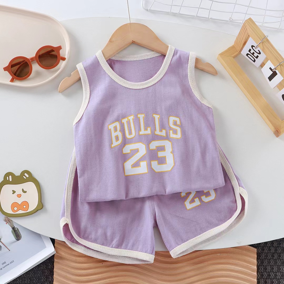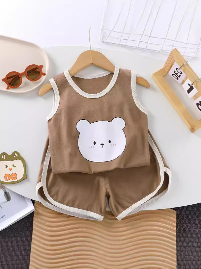 Детский жилет набор из хлопка без рукавов для девочек летняя корейская детская одежда новый летний мальчик набор из двух частей оптом