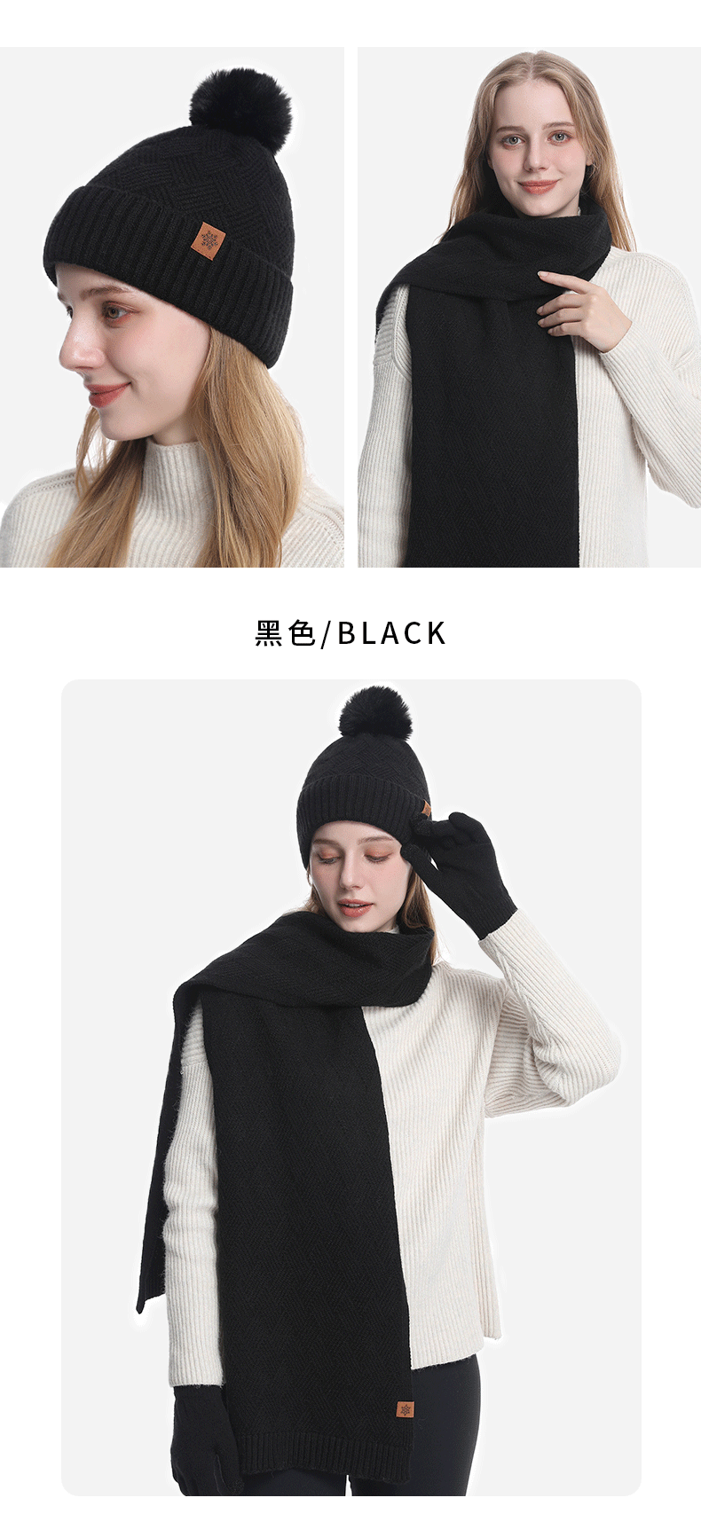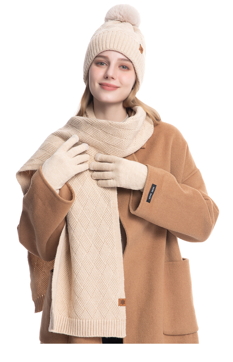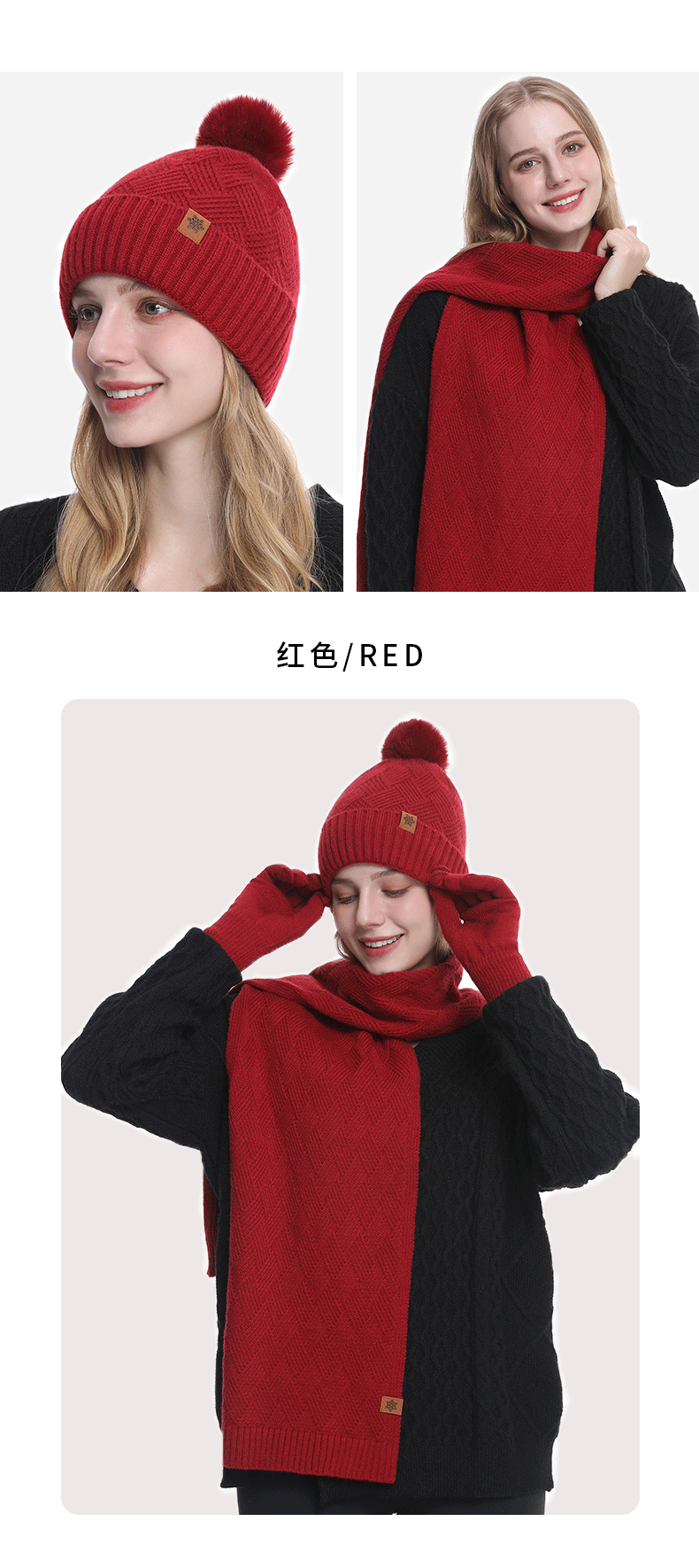 Комплект из трех предметов: шарф, шапка и перчатки.