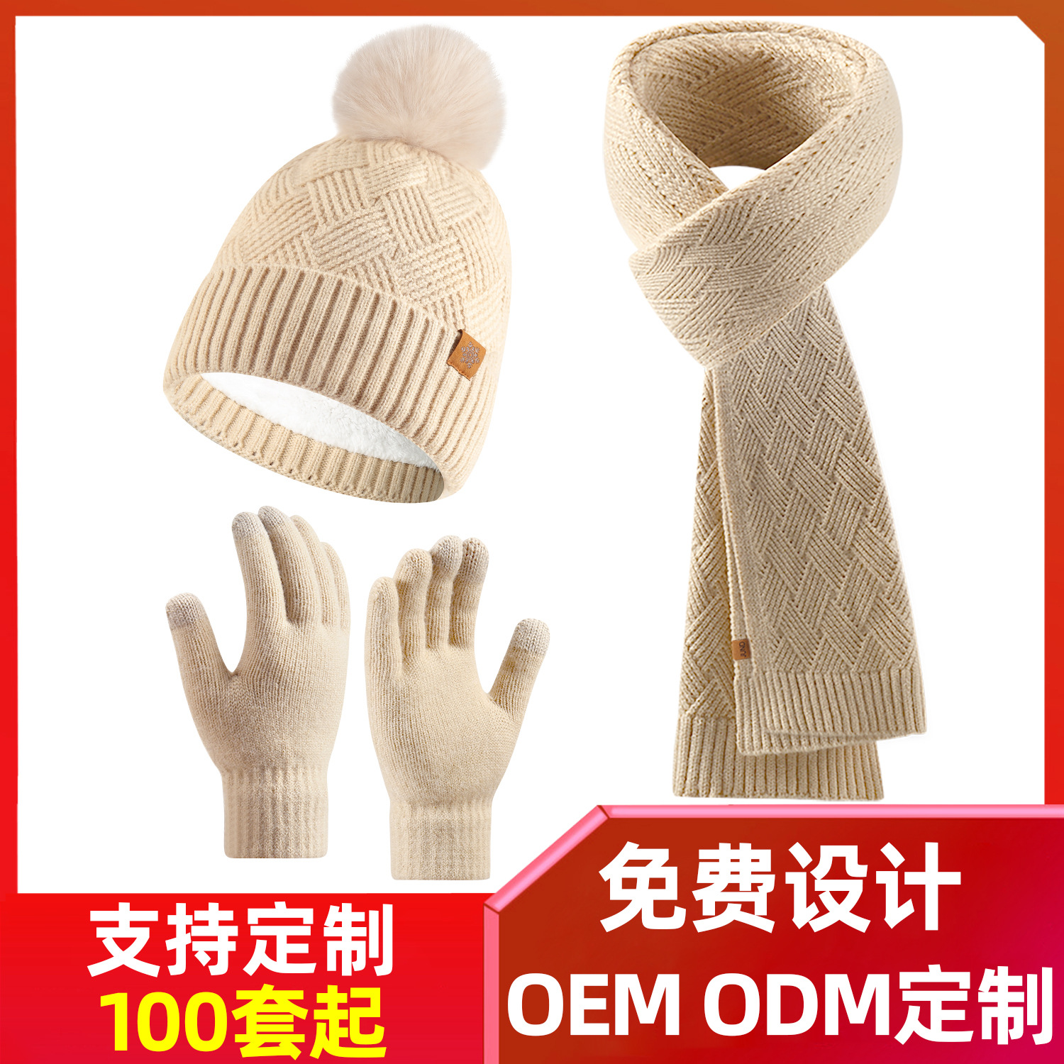 Вязаный комплект из шапки, шарфа и перчаток, индивидуальный пошив, теплый, двухслойный, на флисовой подкладке, утолщенный, для улицы, из шерсти.