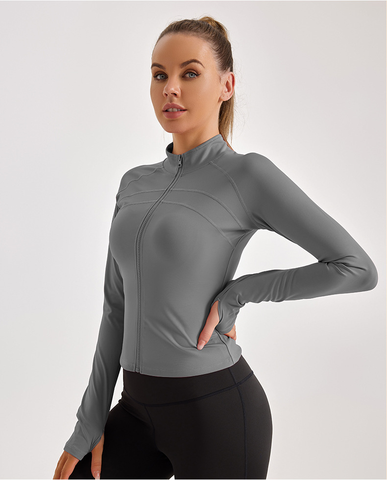 Спортивная куртка на молнии для женщин, облегающая, эластичная, европейский размер, приталенная, для йоги, с эффектом похудения