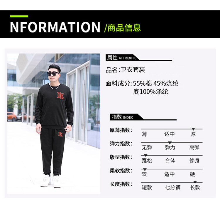 DW1017-DK2017 большой размер 400 кг спортивный хлопок высокого роста длинная версия набор толстых свитерских брюк мужской