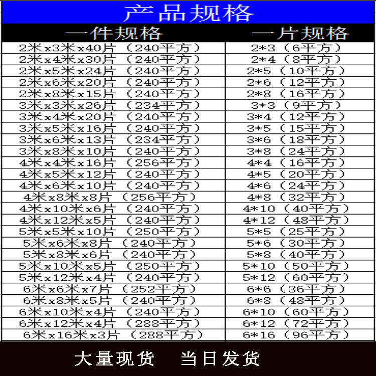 4.产品以平方计价,规格请参照主图4或者详情,如需要买4*5一张就是4*5等于20平方直接拍20平方就可以~~(联系客服或自己备注就可以)