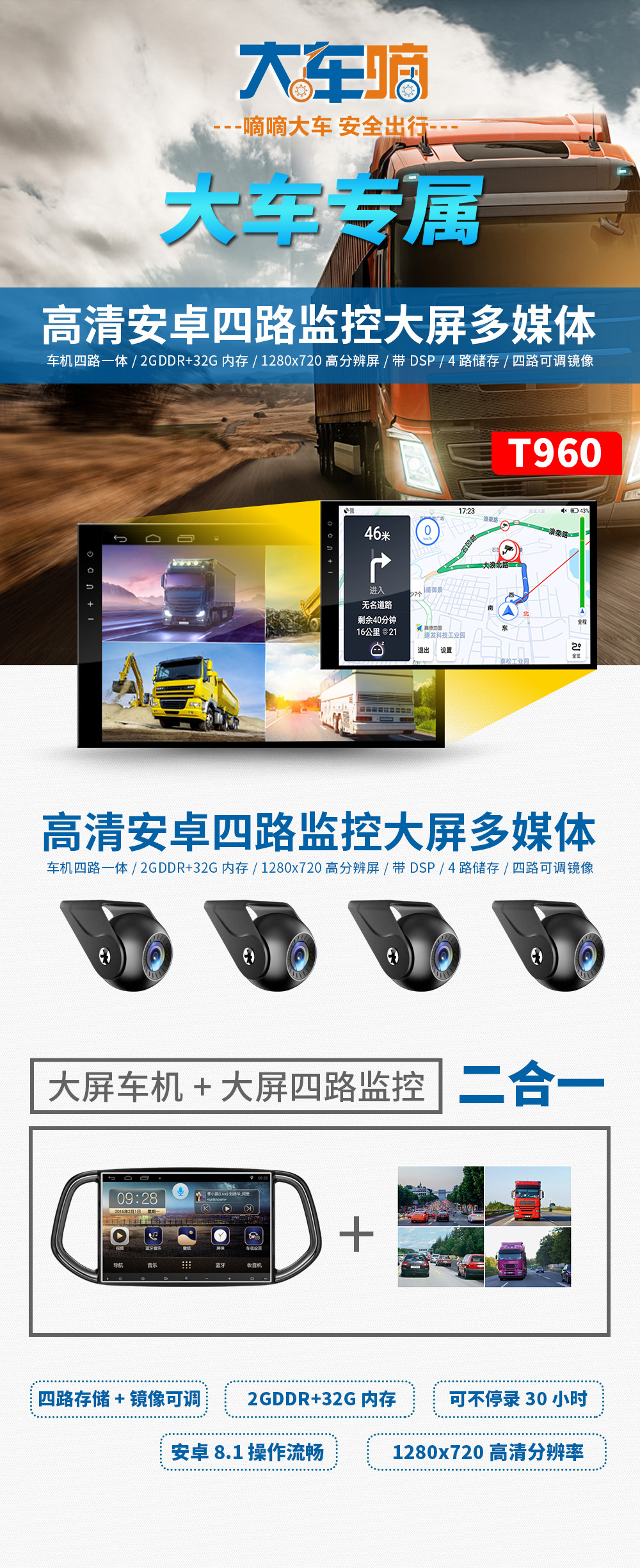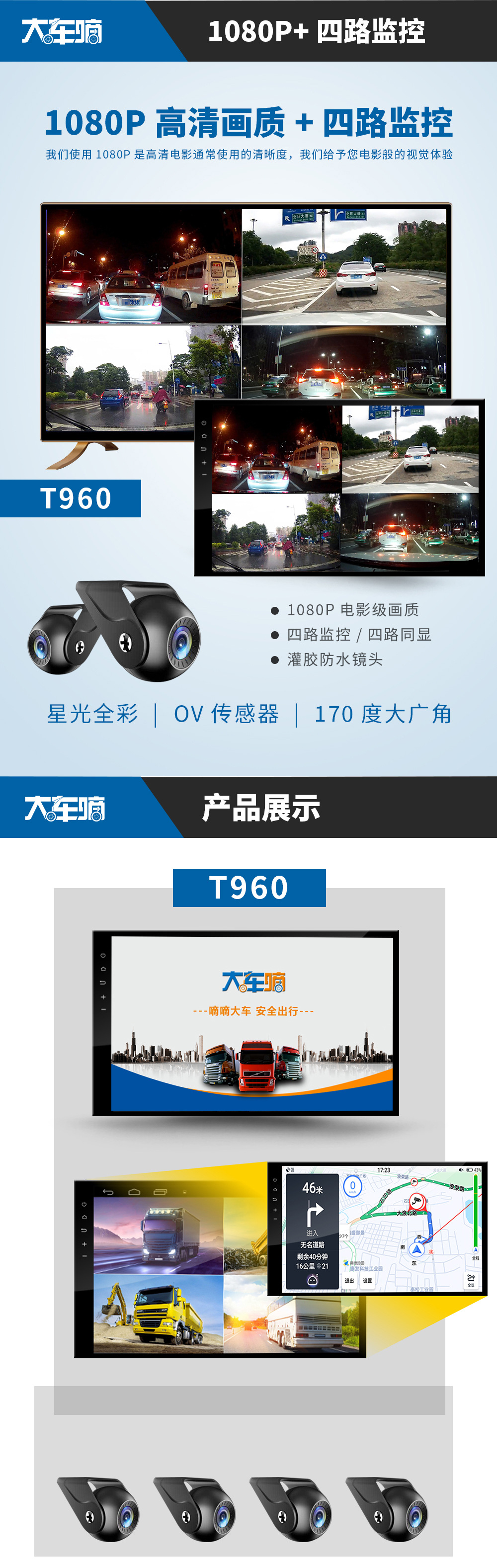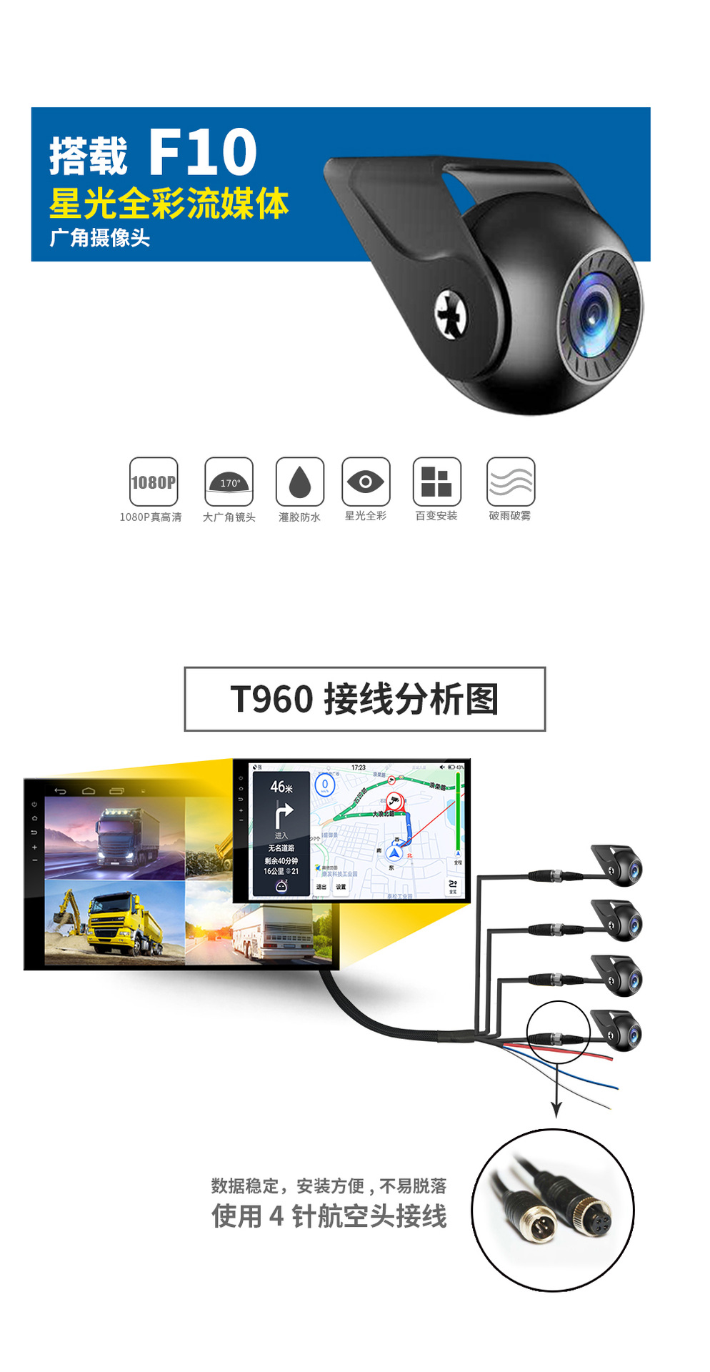 • 适用车型:货车、半挂车、客车等需要多方位监控的商用车,也可用于对监控有较高需求的私家车