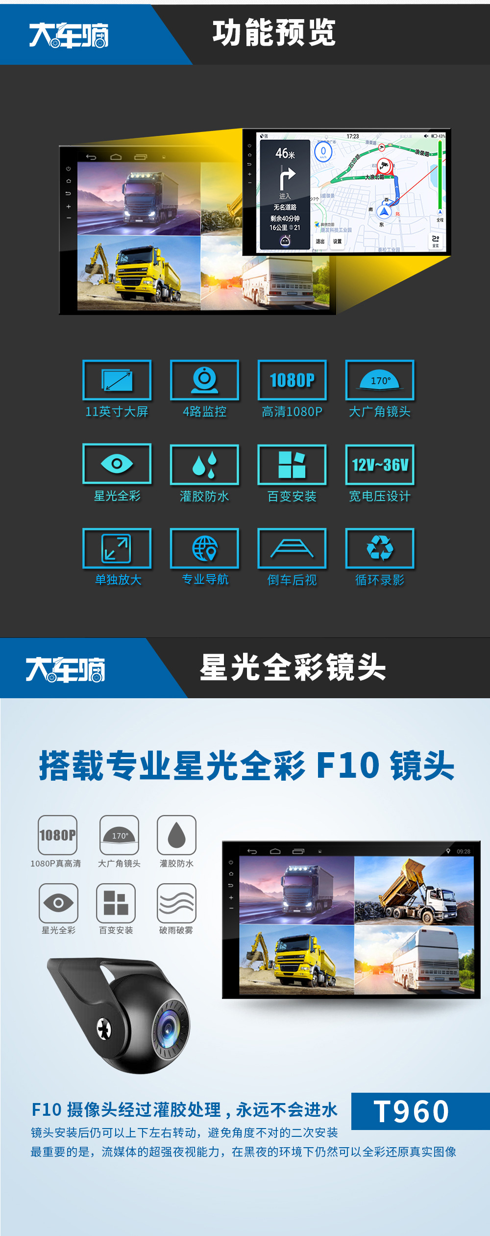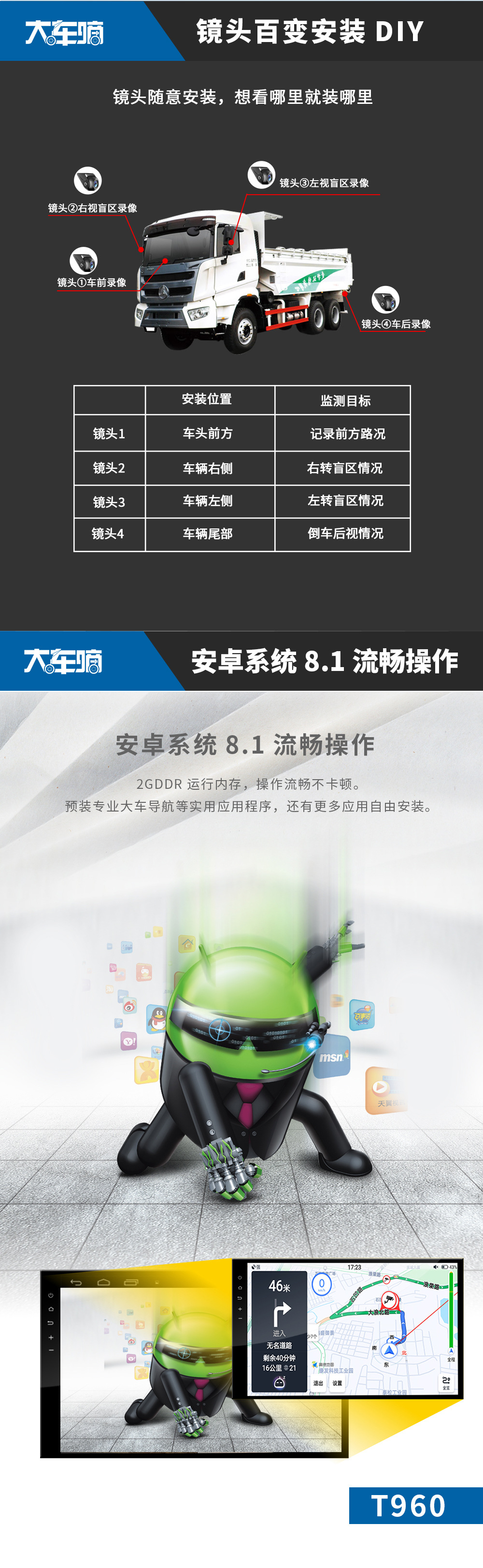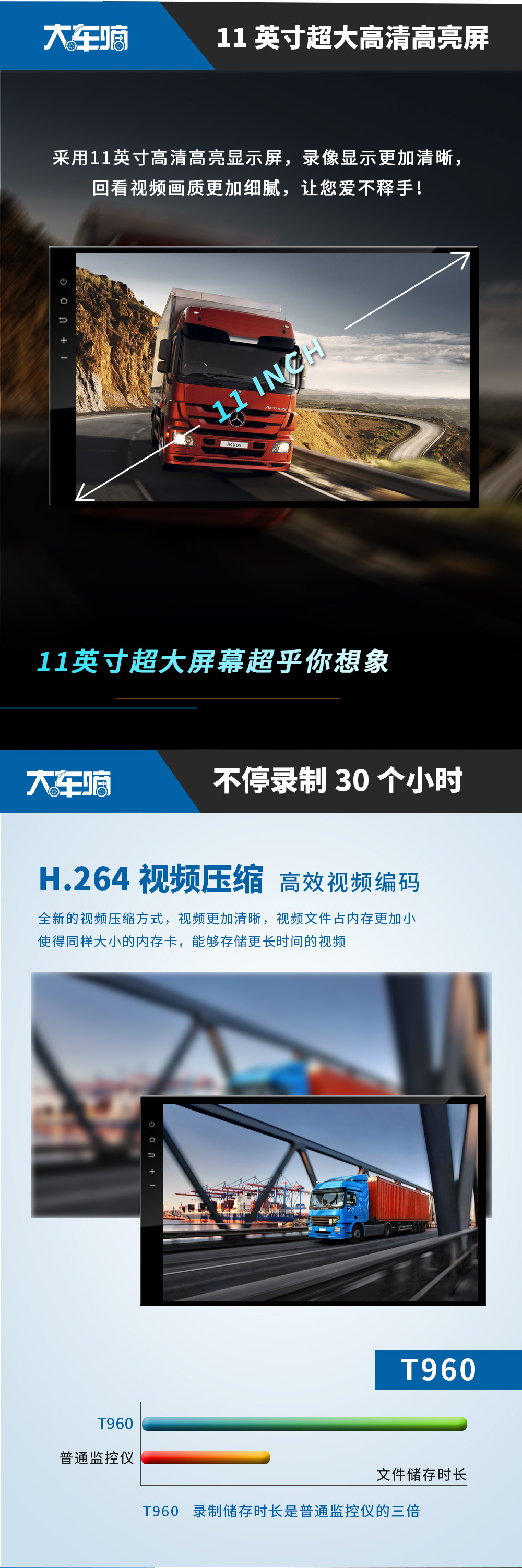 • 适用车型:货车、半挂车、客车等需要多方位监控的商用车,也可用于对监控有较高需求的私家车