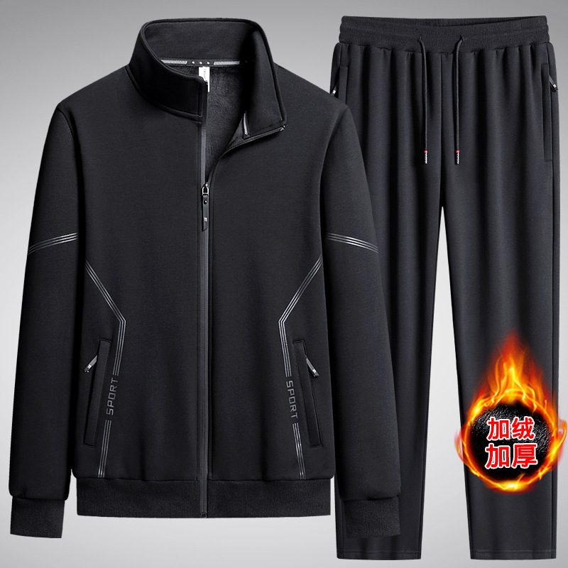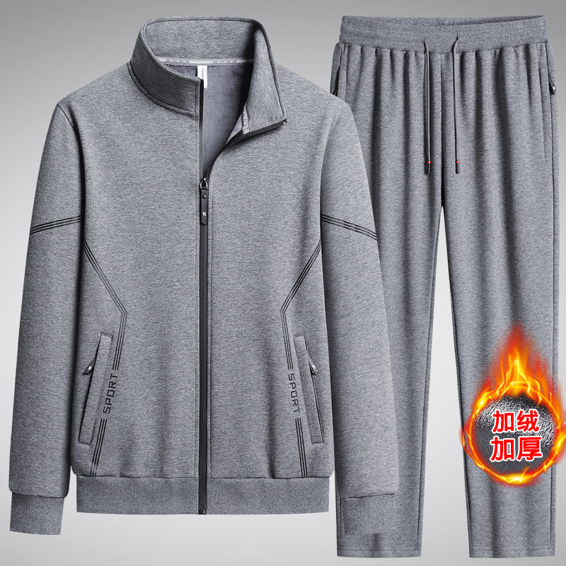 Плюс размер бархатный утолщенные осенние и зимние наборы для спорта и отдыха Бег Теплый кардиган брюки с воротником из двух частей