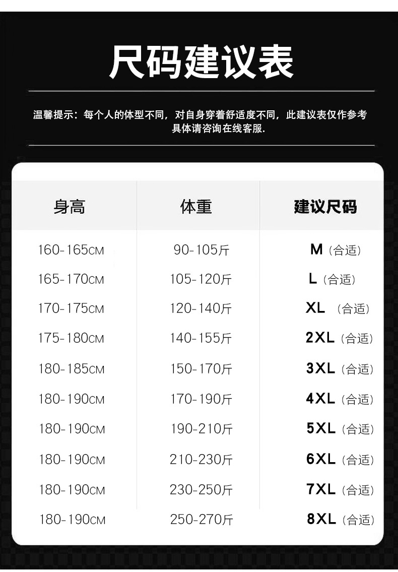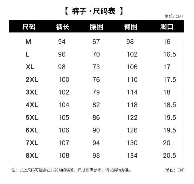 L; XL; 2XL; 3XL; 4XL; 5XL; 6XL; 7XL; 8XL