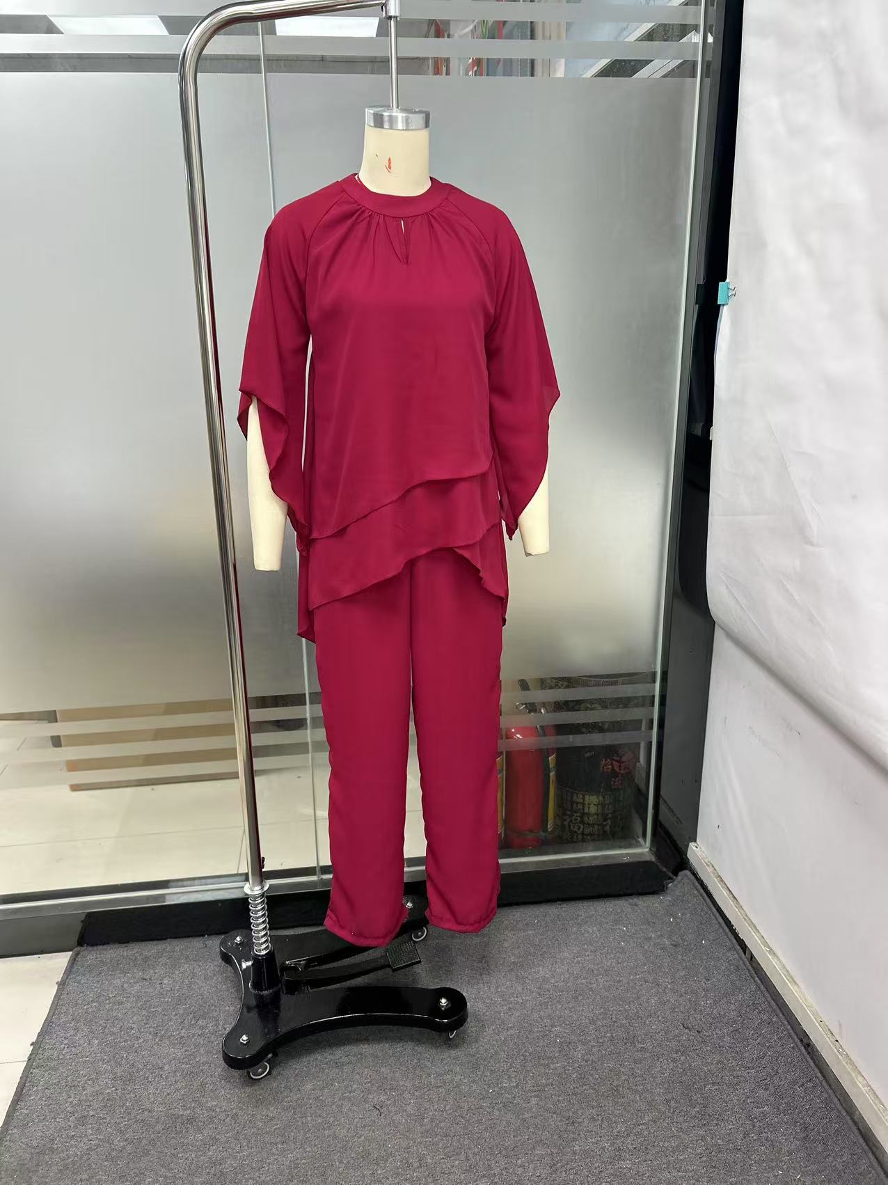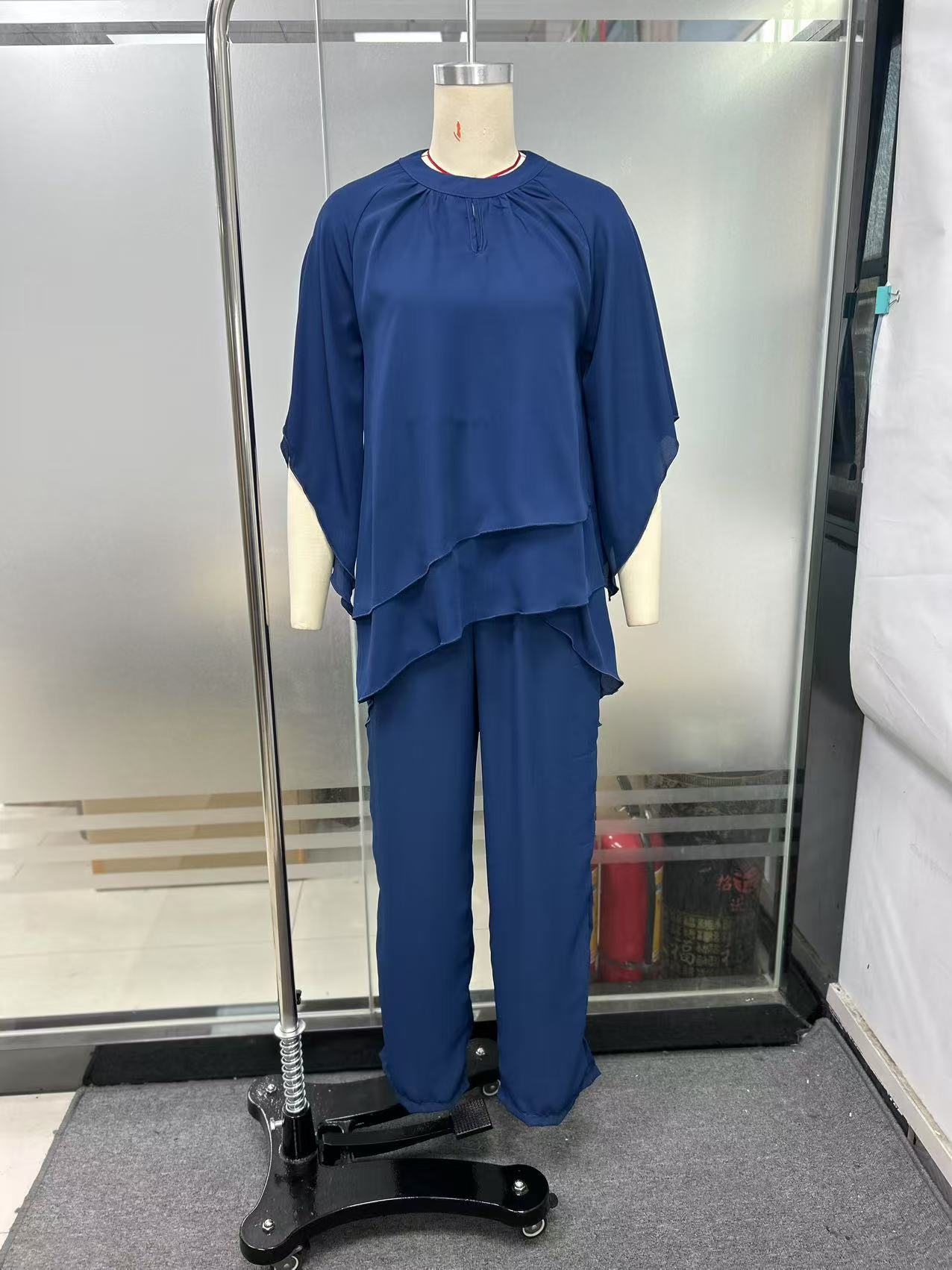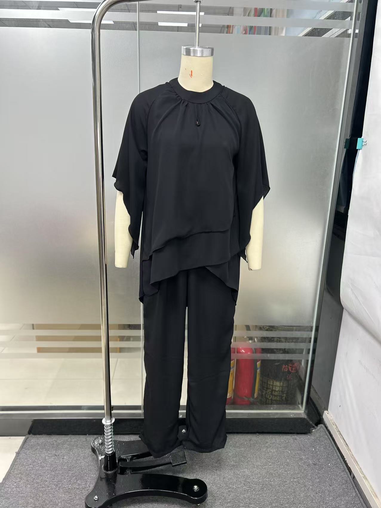 Европейская и американская женская одежда 2025 новая мода повседневная нерегулярная летучая мышь рукава комбинезон из двух частей набор