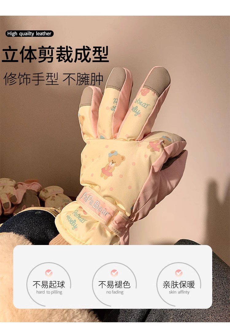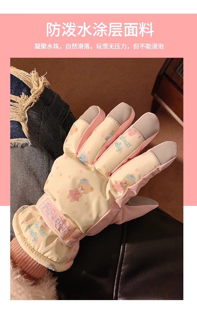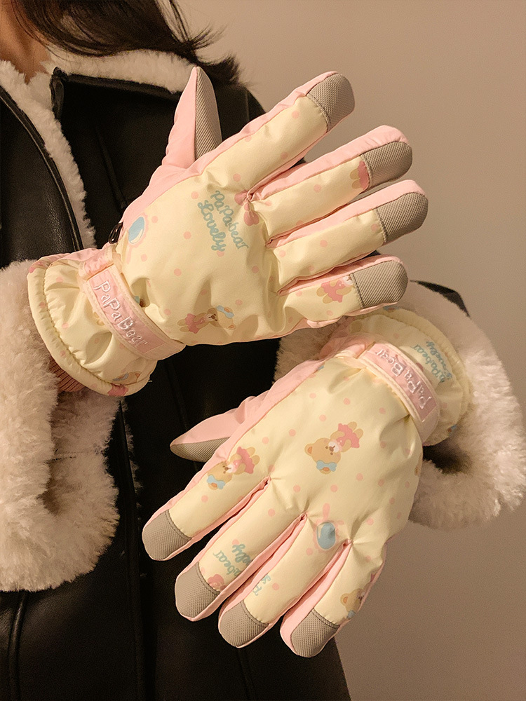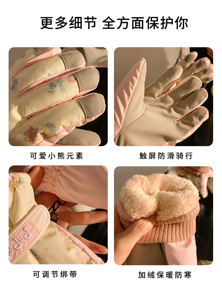 Милый медведь относится к лыжным перчаткам для женщин зимой теплая и бархатный сенсорный экран для езды на велосипеде