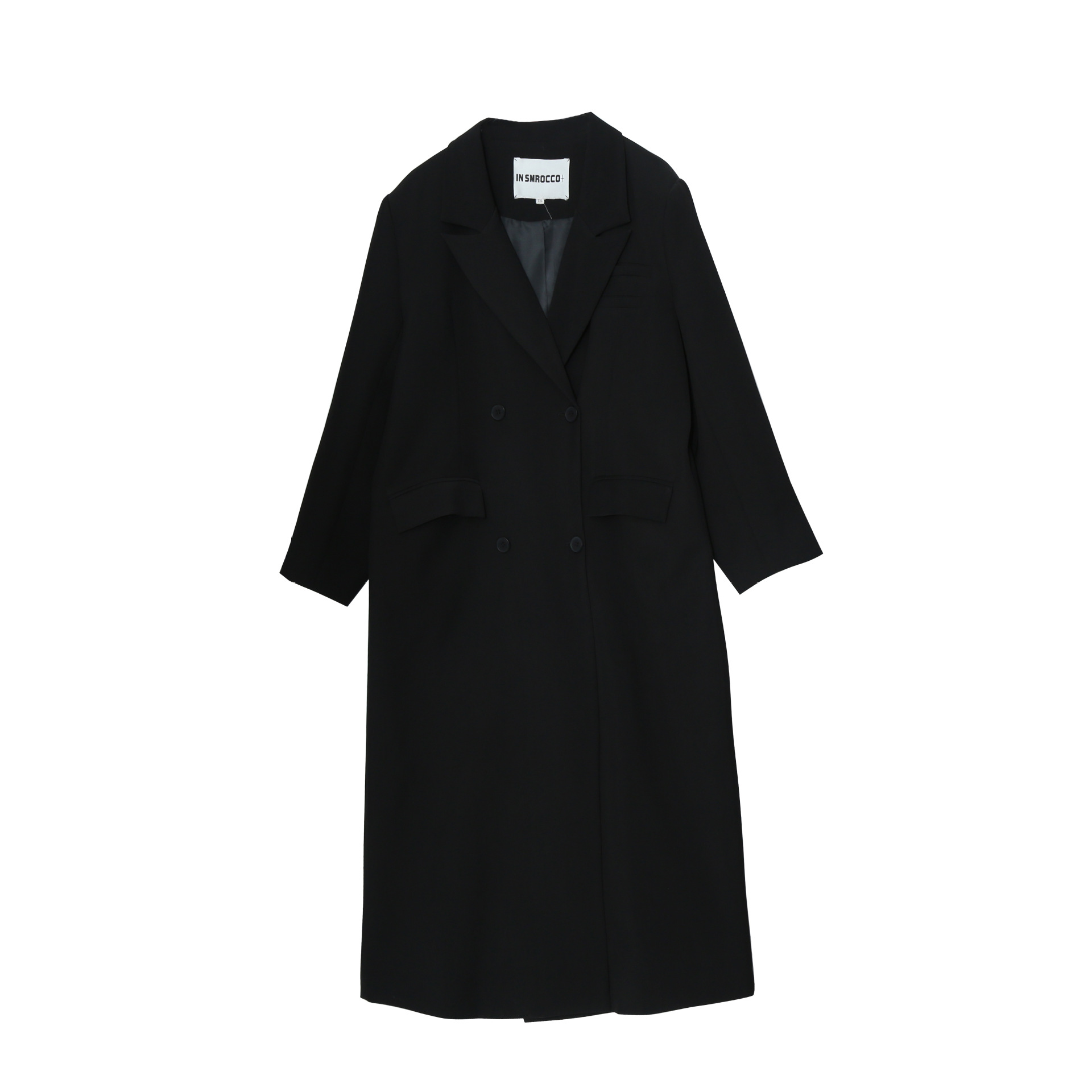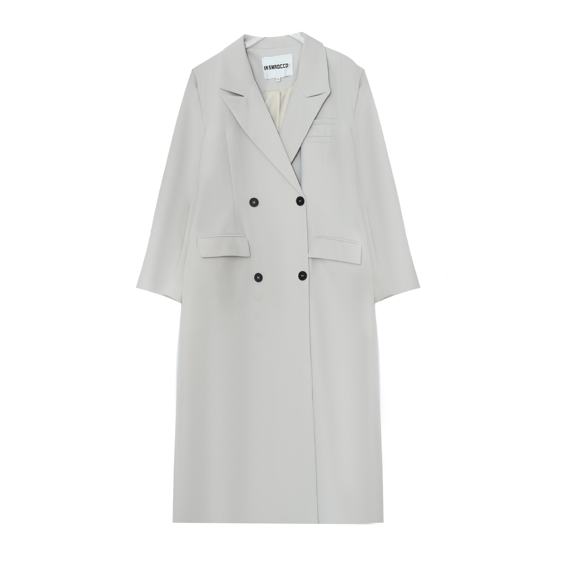 双排扣设计方便穿脱,胸口口袋沿装饰设计增加设计感