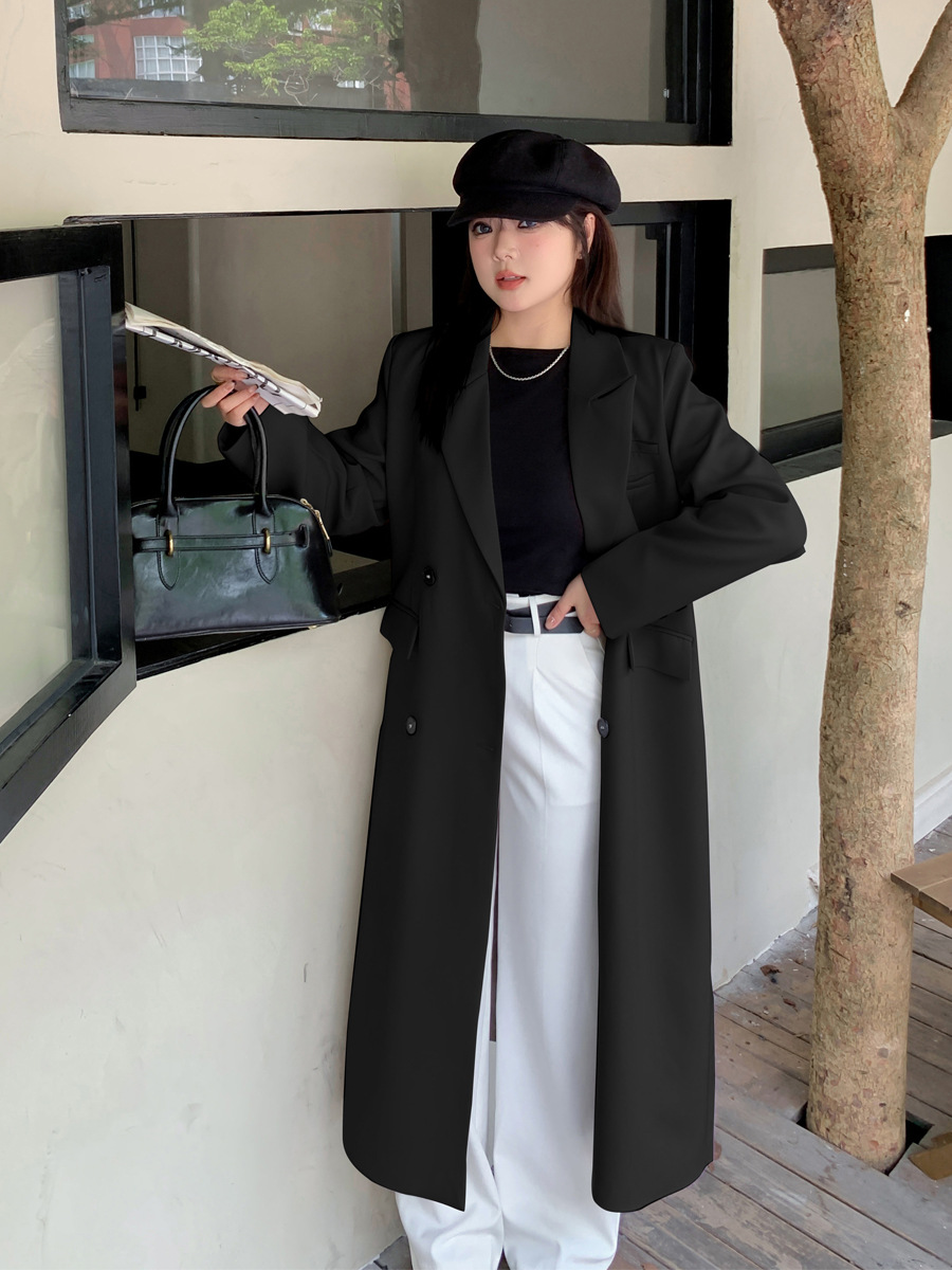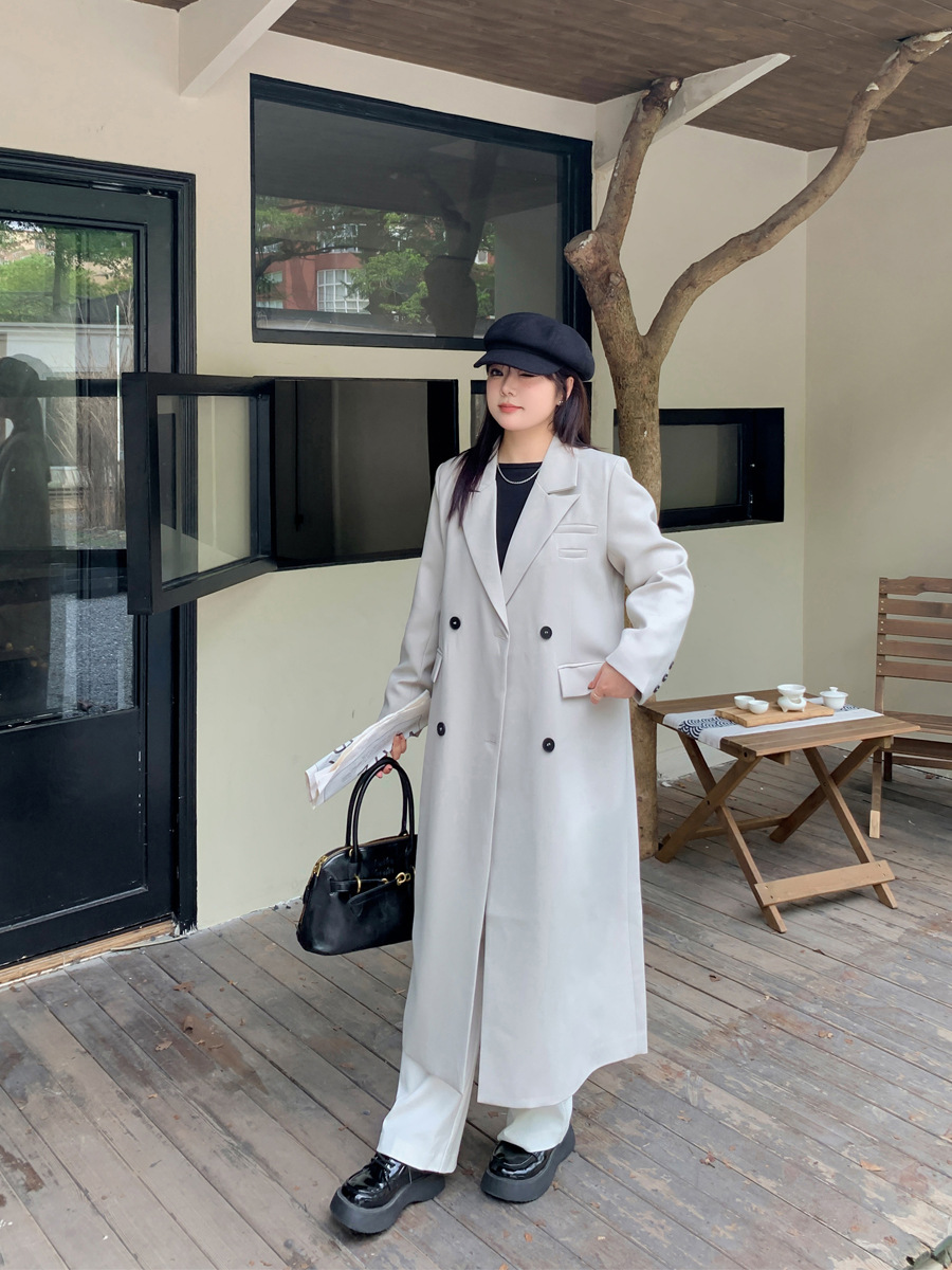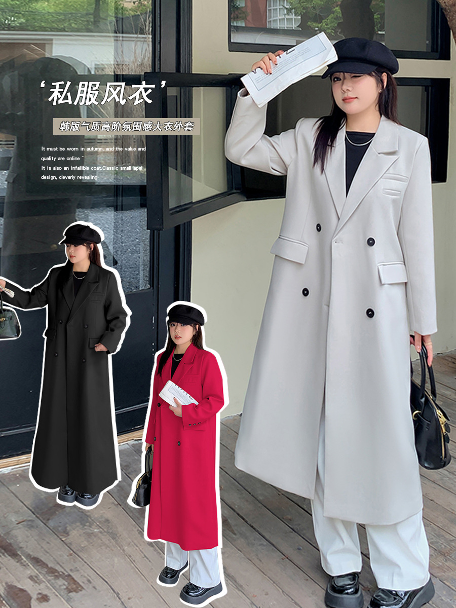 A512 Xuanchen, осенний новый женский удлиненный свободный пиджак-тренч длиной выше колена в винтажном стиле больших размеров.