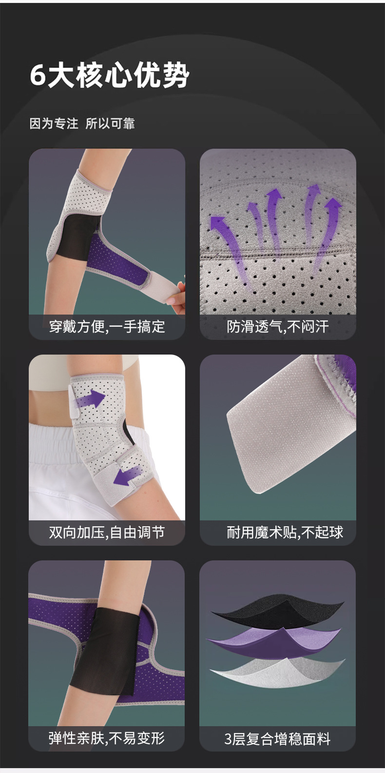 Спортивный регулируемый налокотник Летний мужской и женский теннис