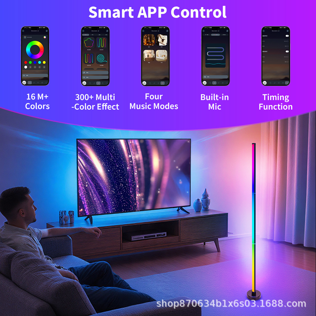 Новая светодиодная RGB-лампа для создания атмосферы, активируемая звуком и управляемая через приложение, угловая лампа, эксклюзивно для трансграничной торговли, полностью сертифицирована.