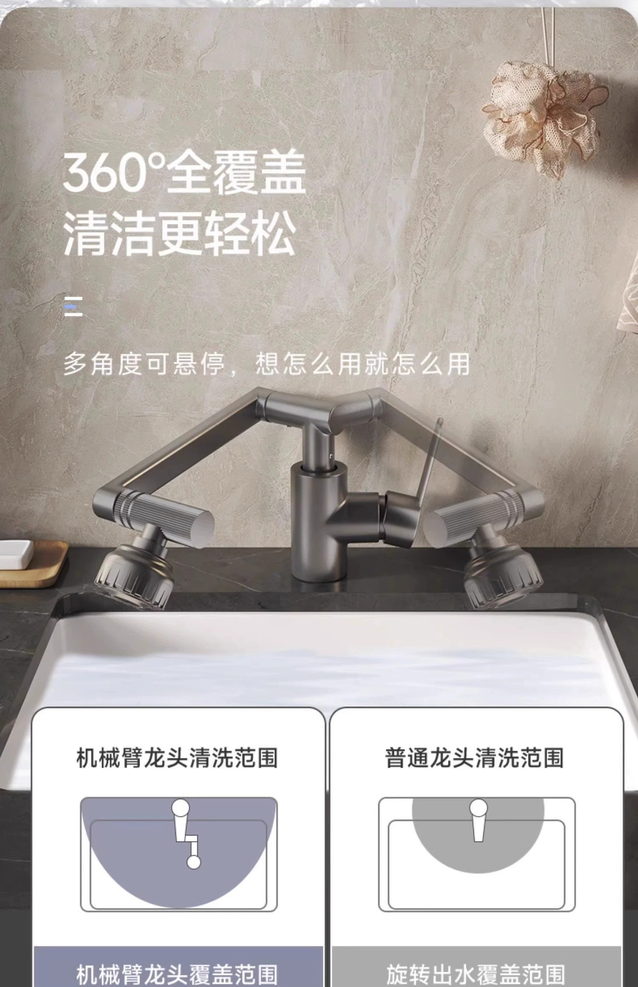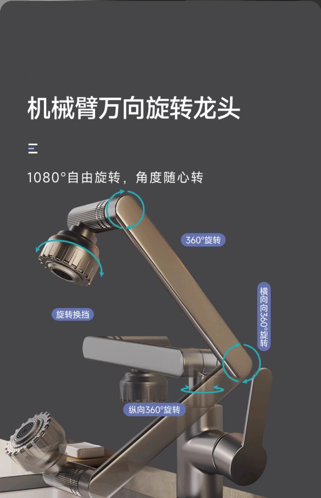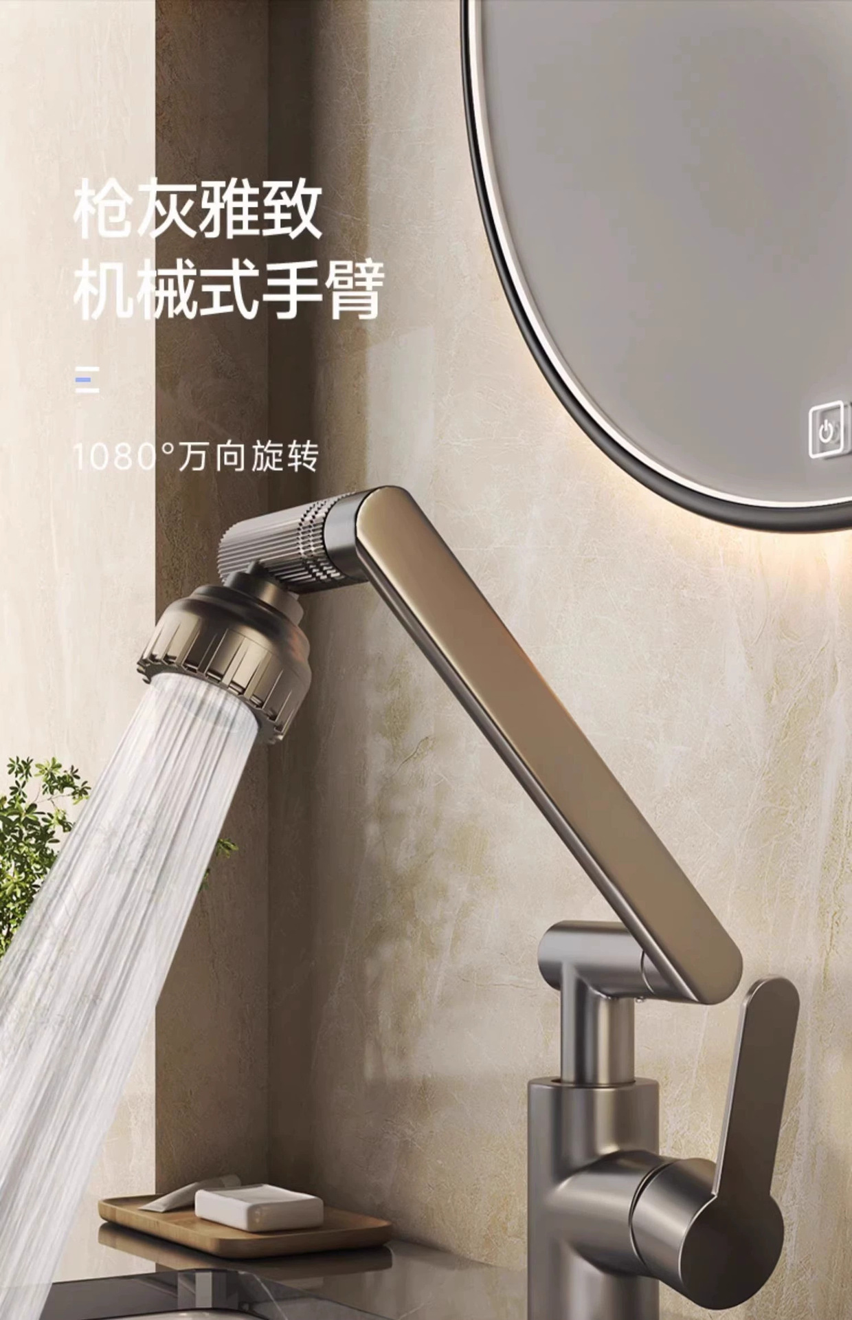 1080°Вращающийся смеситель с роботом-черный; 1080°Роботизированный поворотный кран-пистолет серый; Вращающийся смеситель с робототехническим рычагом — черный [с водозаборной трубкой длиной 60 см]; Вращающийся смеситель с робототехническим рычагом серый [с водозаборной трубой 60 см]