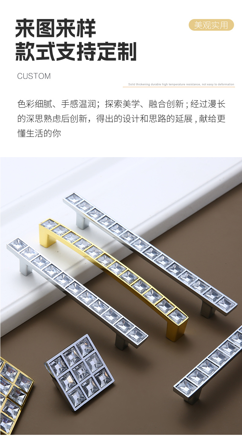 Кристаллическая ручка U-образный современный минималистский шкаф дверь для обуви ящик для шкафа с бриллиантами двойное отверстие квадратная хрустальная ручка