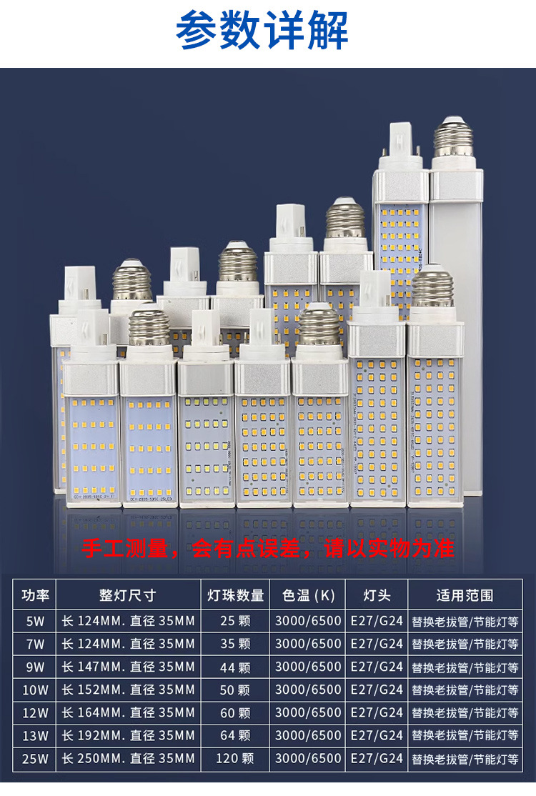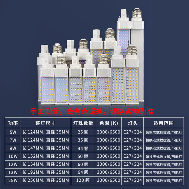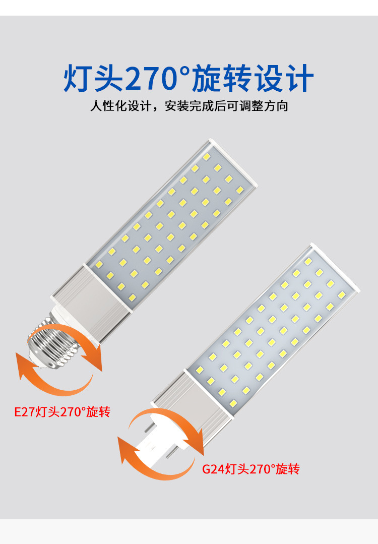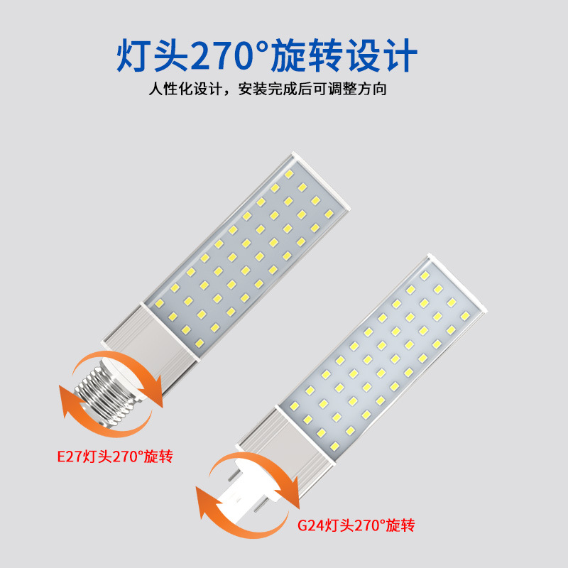 Светодиодная горизонтальная лампа-штекер 110В/220В, цоколь E27, замена лампы G24, энергосберегающая, сверхъяркая, бесплатная доставка