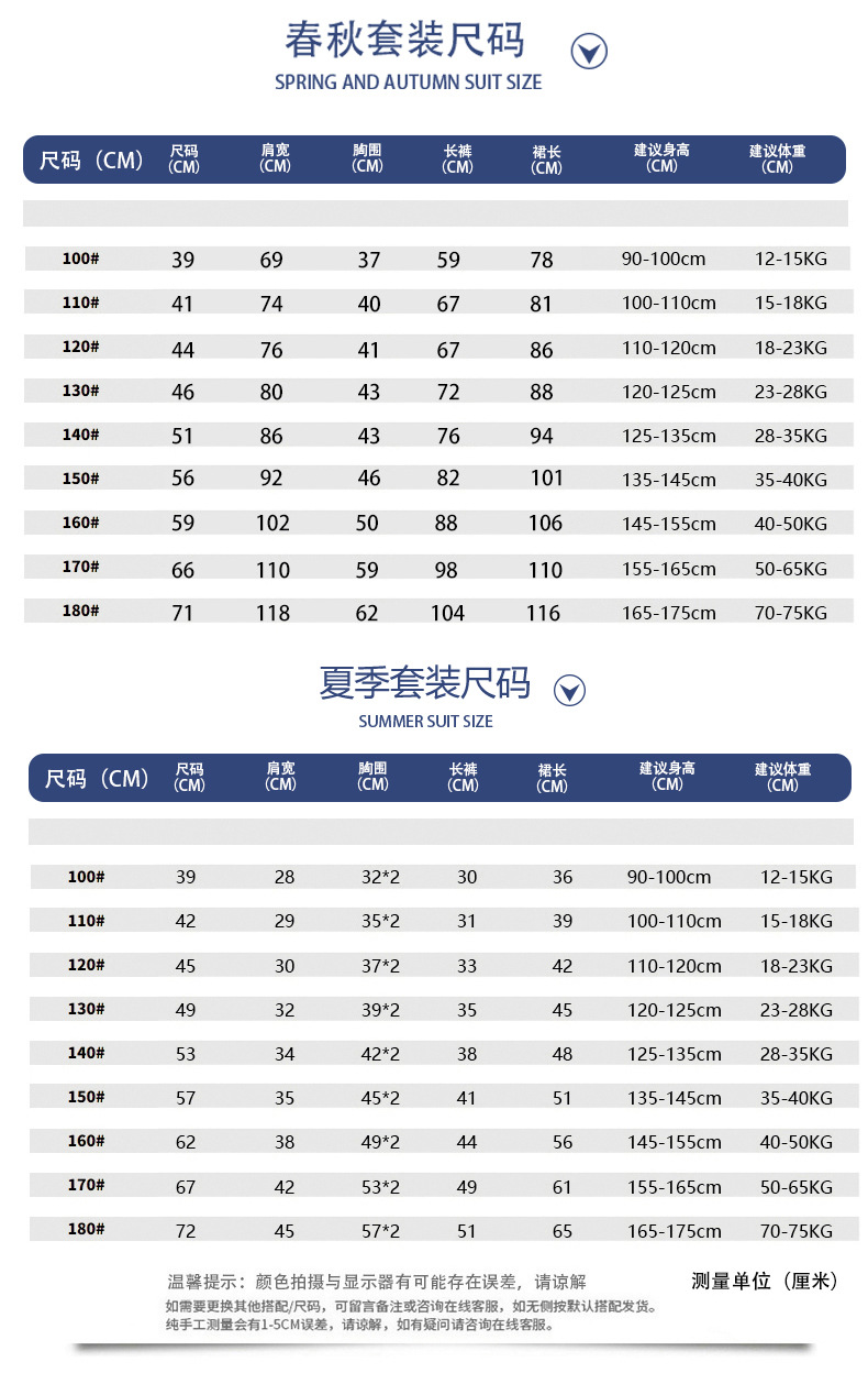 100cm; 110cm; 120cm; 130cm; 140cm; 150cm; 160cm; 170cm; 180cm