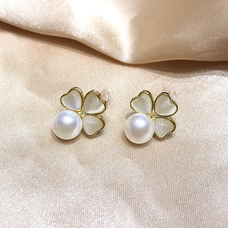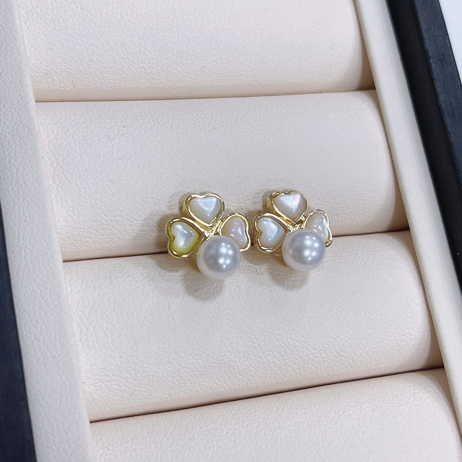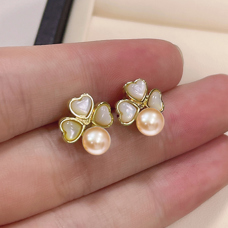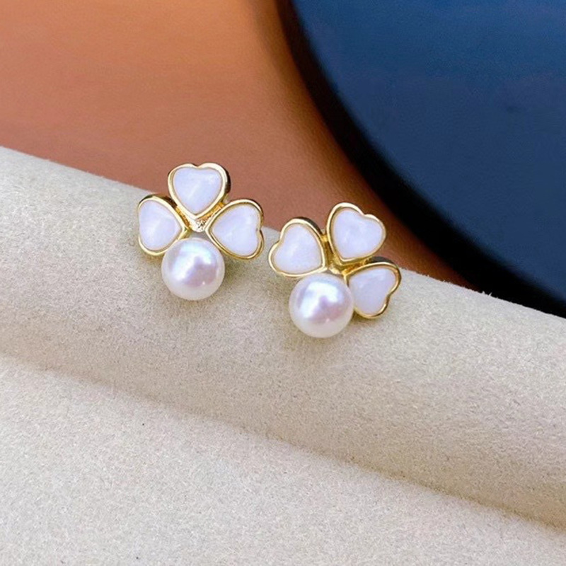 Серьги из натурального пресноводного жемчуга Серьги с жемчугом счастливого клевера в форме сердца Доступные роскошные нишевые стили Элегантные серьги гипоаллергенные